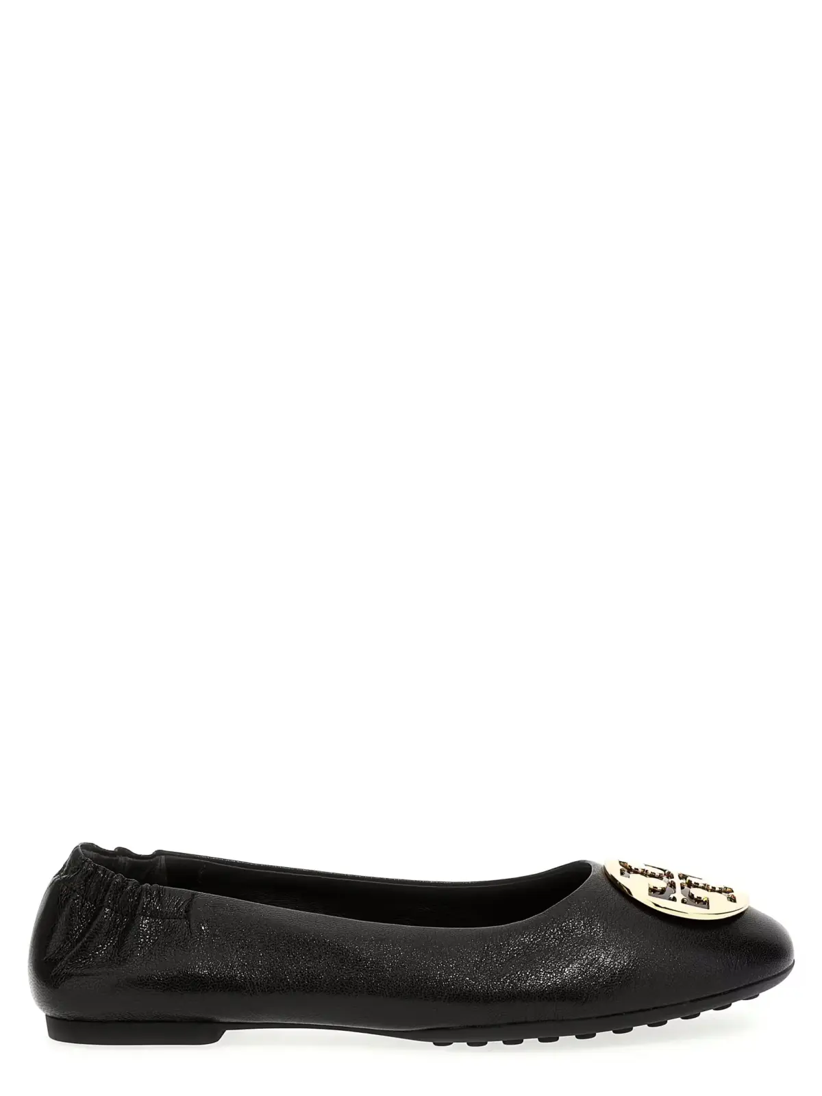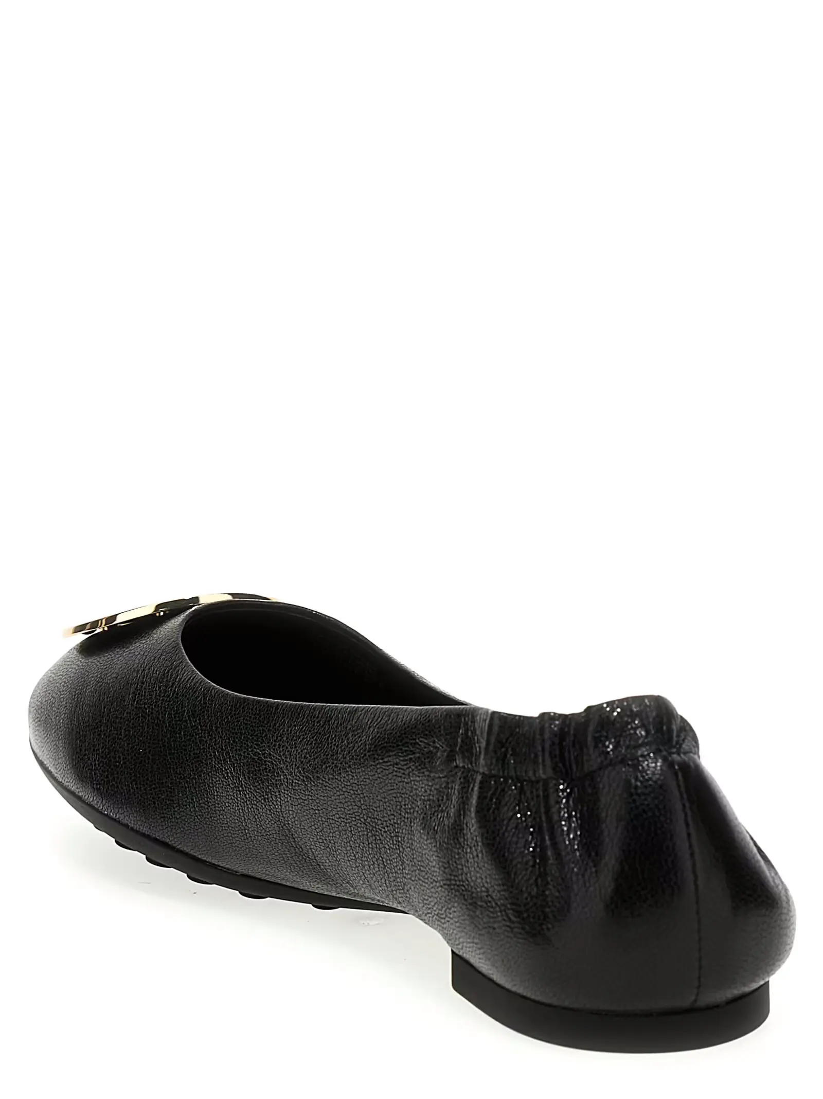 Вишукані чорні балетки з натуральної шкіри з металевим логотипом поєднують витонченість і сучасний стиль, забезпечуючи комфорт та універсальність для щоденного використання, підкреслюючи статус і бездоганний смак своєї власниці.
