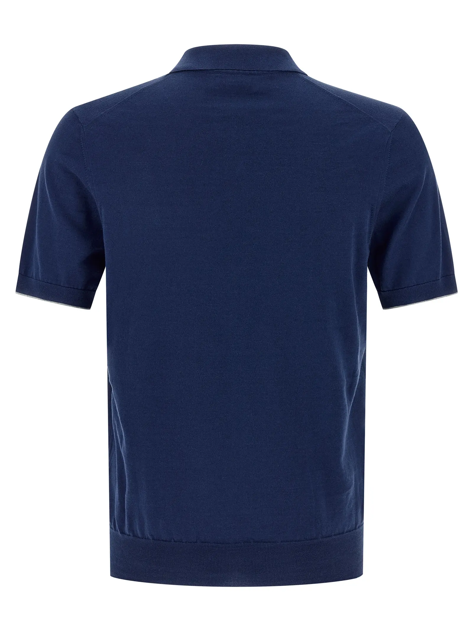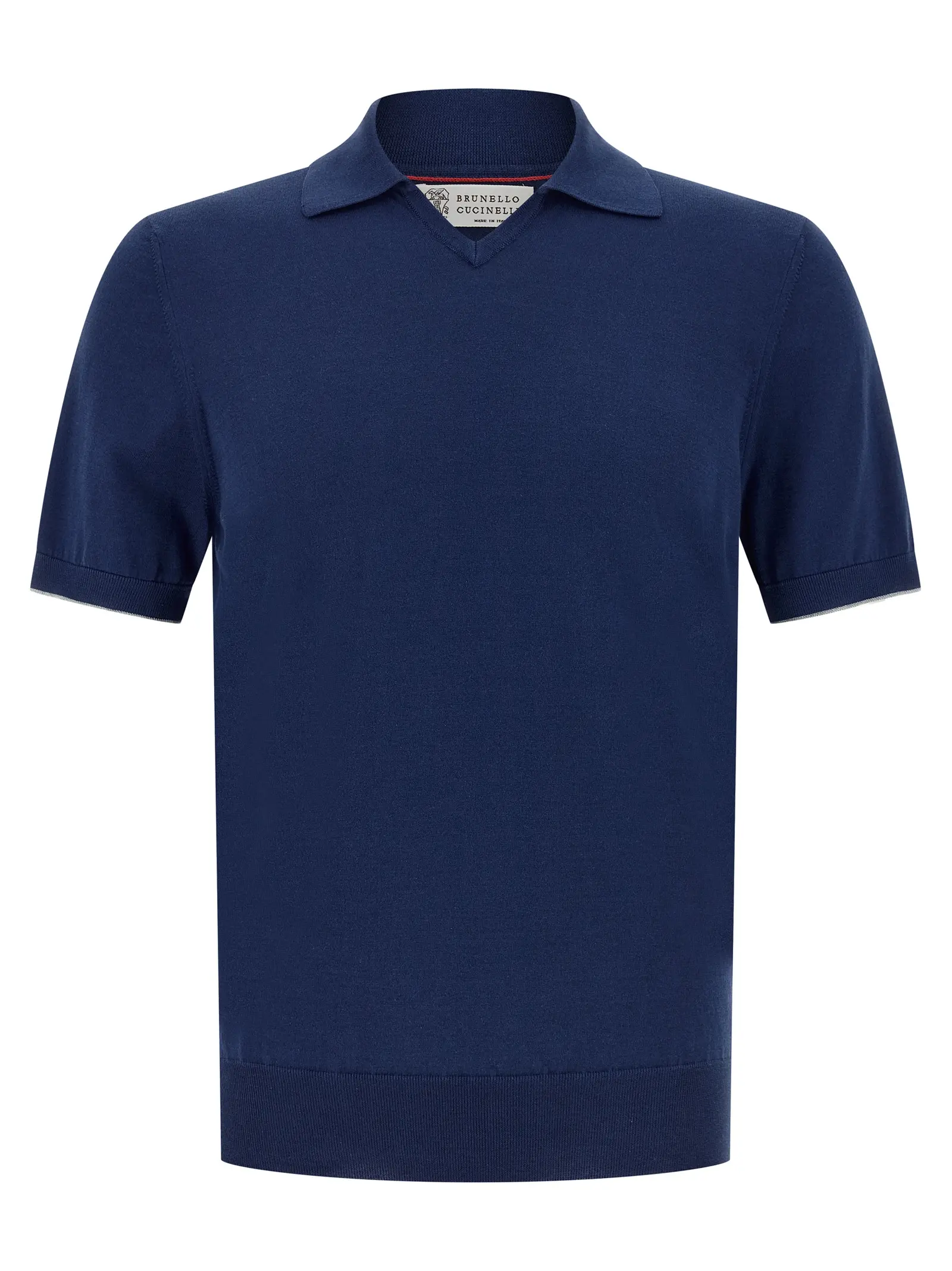 V-подібний виріз горловини з коміром та контрастний кант на рукавах. Еластична вставка по нижньому краю. Склад 100% бавовна.