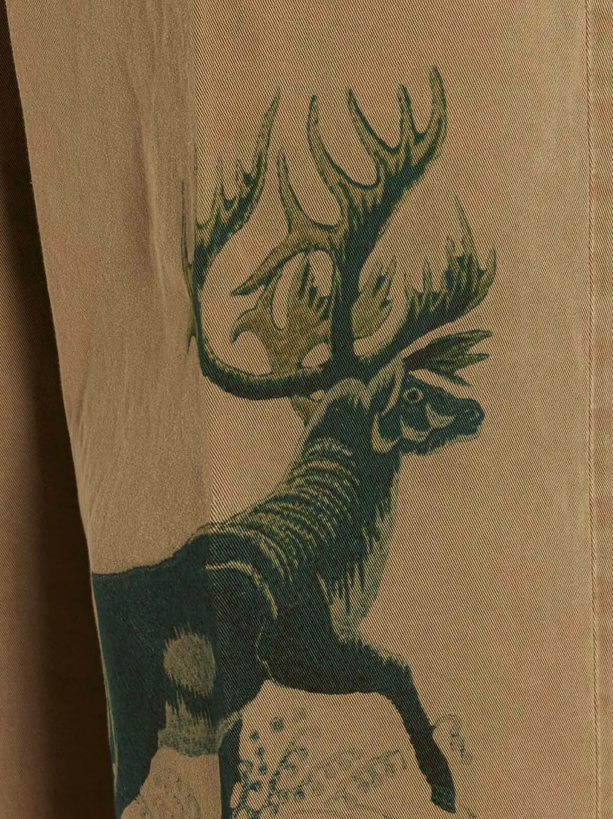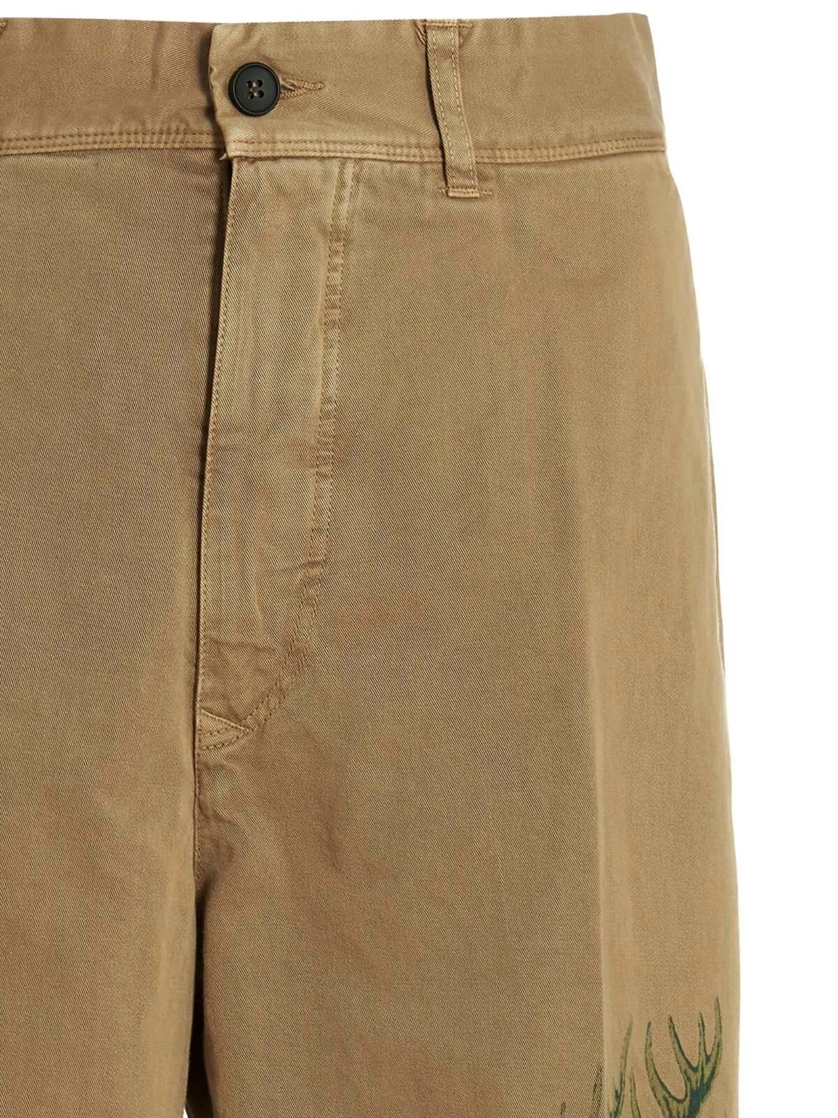 Чоловічі бавовняні штани від Incotex Red X Facetasm виконані в бежевому кольорі, прикрашені стильним принтом. Модель має застібку на блискавку та кнопку, а також оснащена кишенями для зручного використання. Штани виготовлені з 100% бавовни, що забезпечує високий рівень комфорту та приємність до тіла під час носіння.