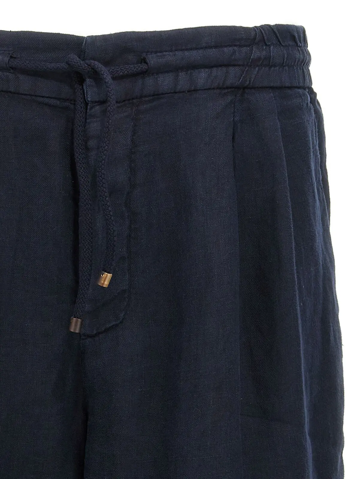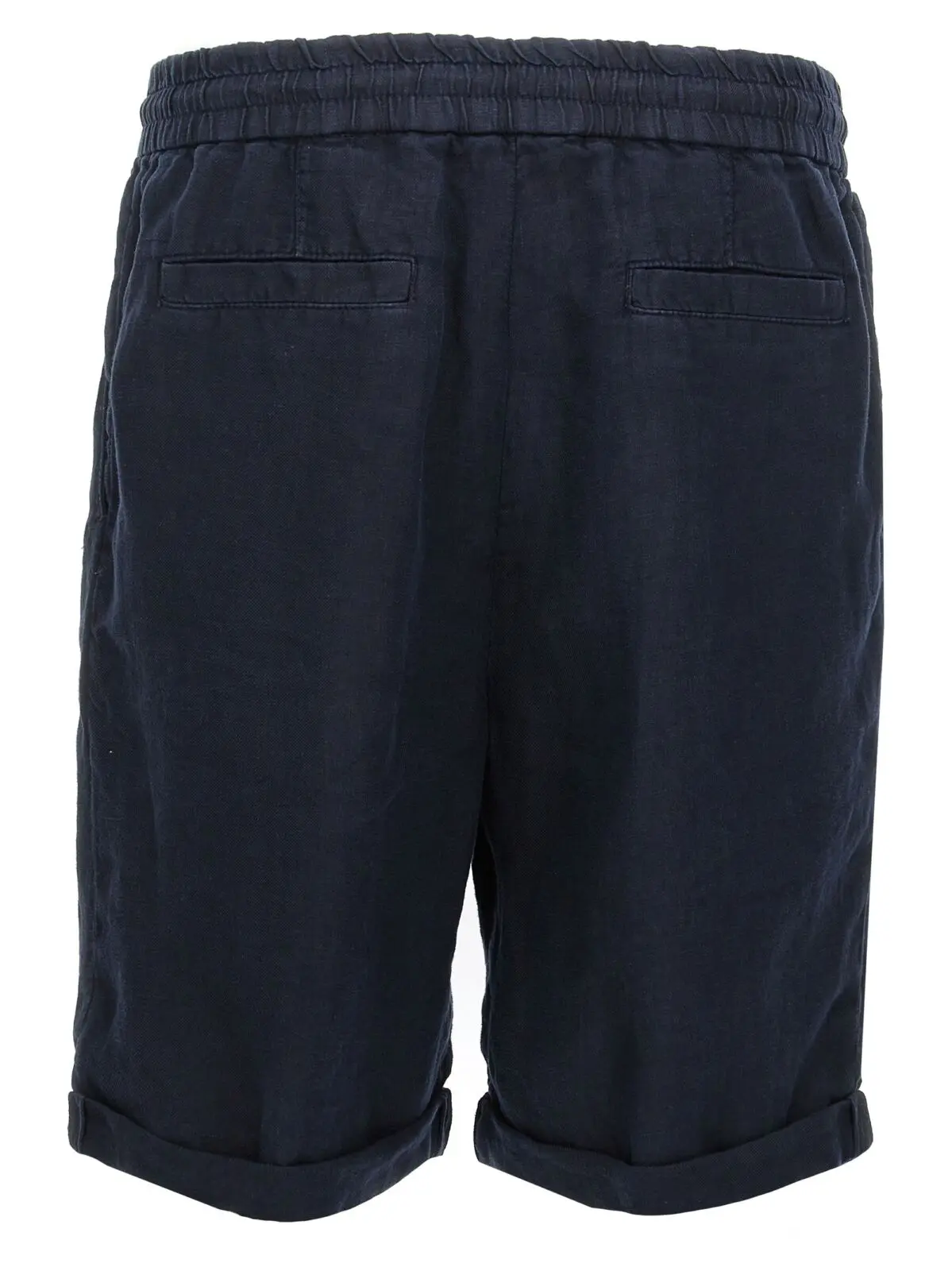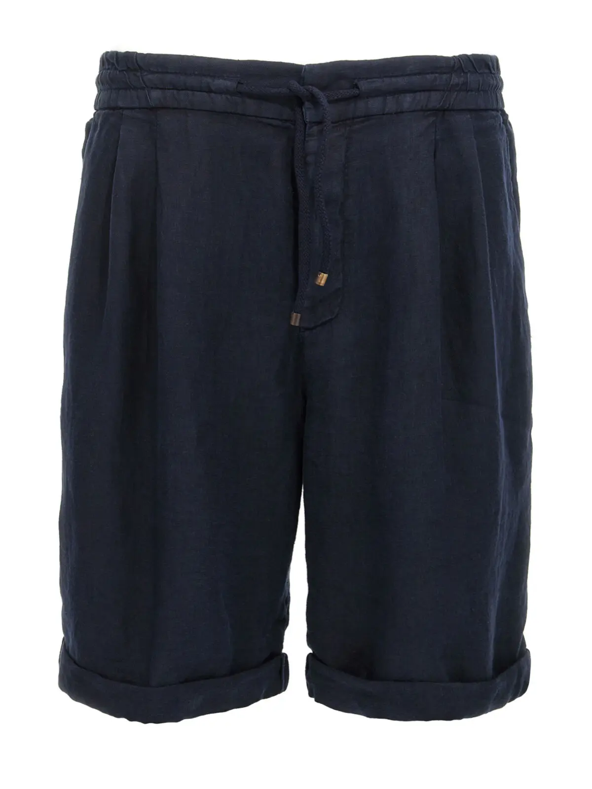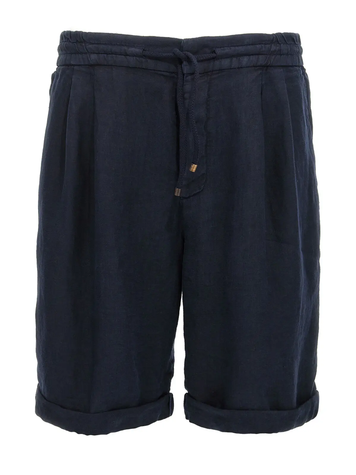 Ці бермуди від Brunello Cucinelli втілюють у собі неперевершену якість та елегантність. Спеціально виготовлені з 100% льону, вони забезпечують комфорт і легкість навіть у спекотні дні. Інноваційний дизайн з еластичним поясом, регульованим шнурком, блискавкою на застібці та зручними кишенями підкреслює їхню функціональність. Оригінальний підворіт додає стильного акценту, а насичений синій колір робить ці бермуди універсальним елементом гардеробу, який ідеально підходить для різних випадків. Цей виріб не лише відповідає вимогам сучасної моди, але й демонструє відповідальність бренду до екології, адже виготовлений з натуральних матеріалів.