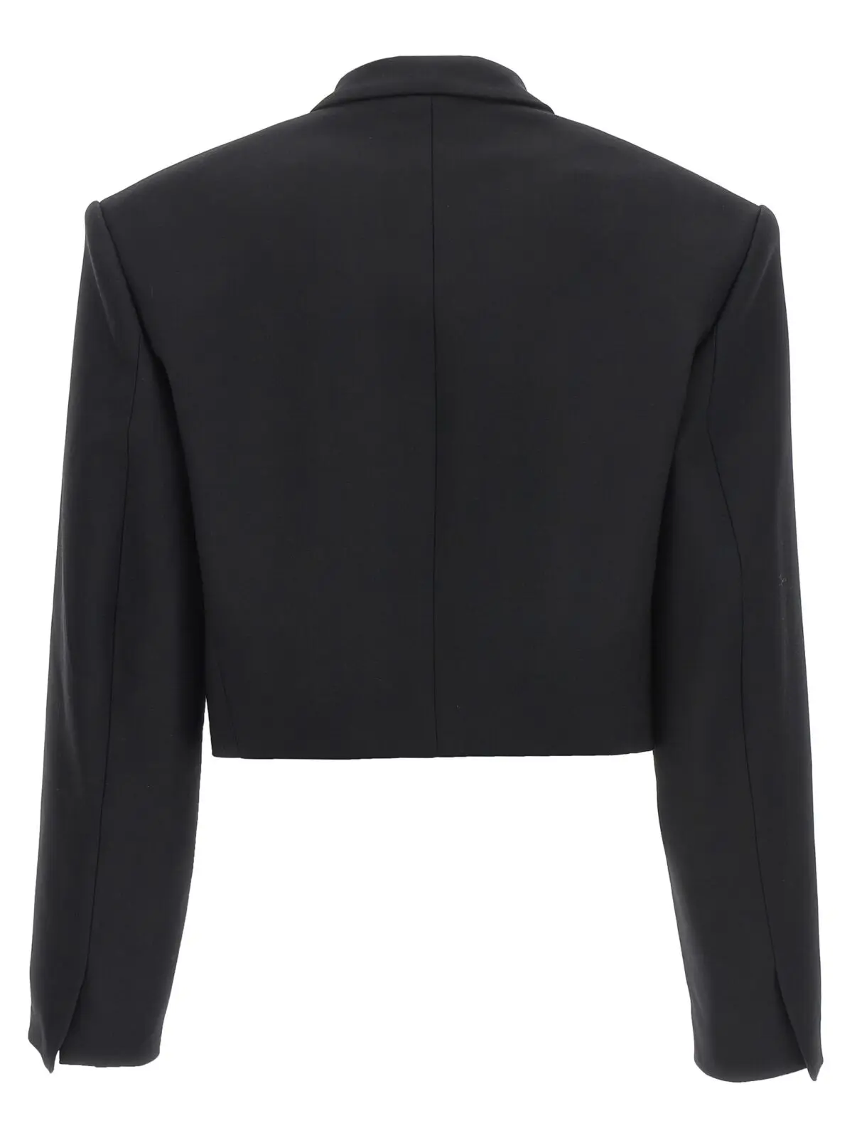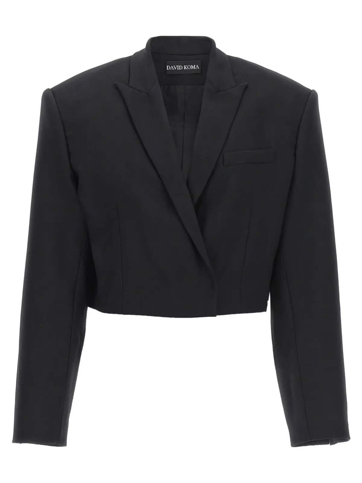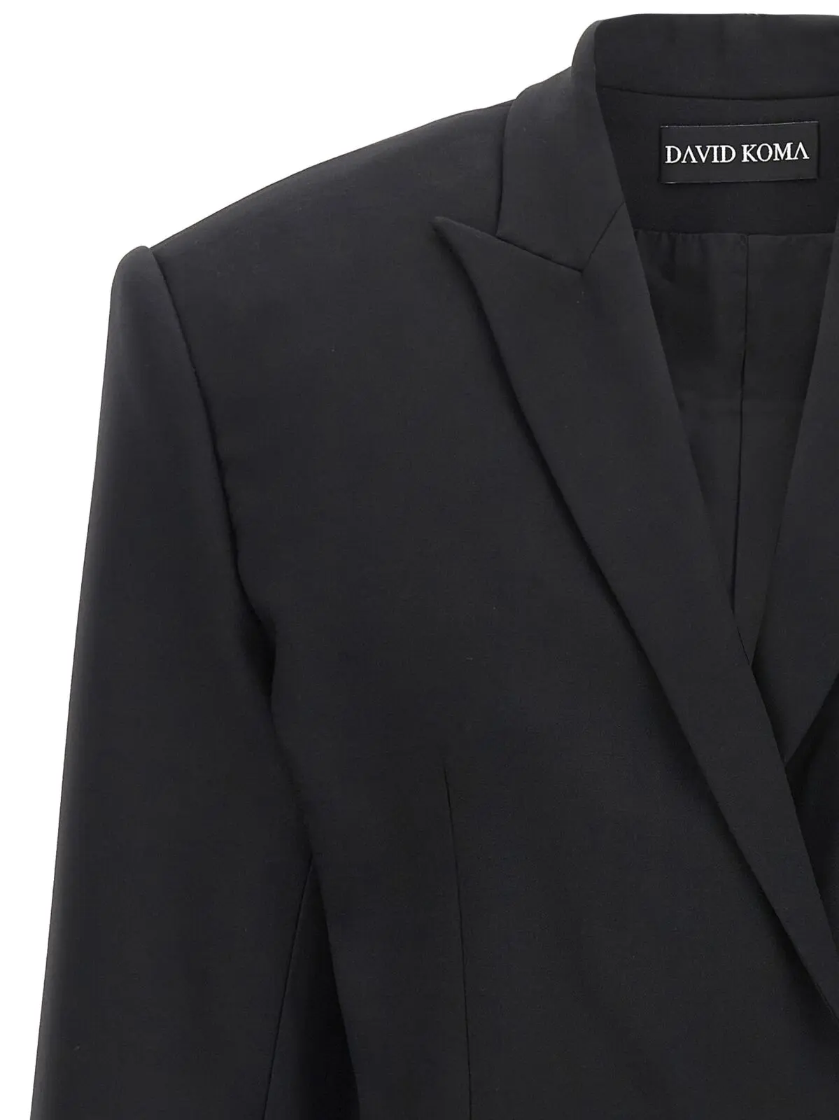 Цей чорний блейзер від David Koma – ідеальний вибір для стильних жінок, які хочуть виглядати елегантно і модно. Він виготовлений з високоякісної пружної шерсті, що забезпечує комфорт і довговічність. Завдяки своєму короткому крою, він додає образу сучасності і неперевершеної жіночності.