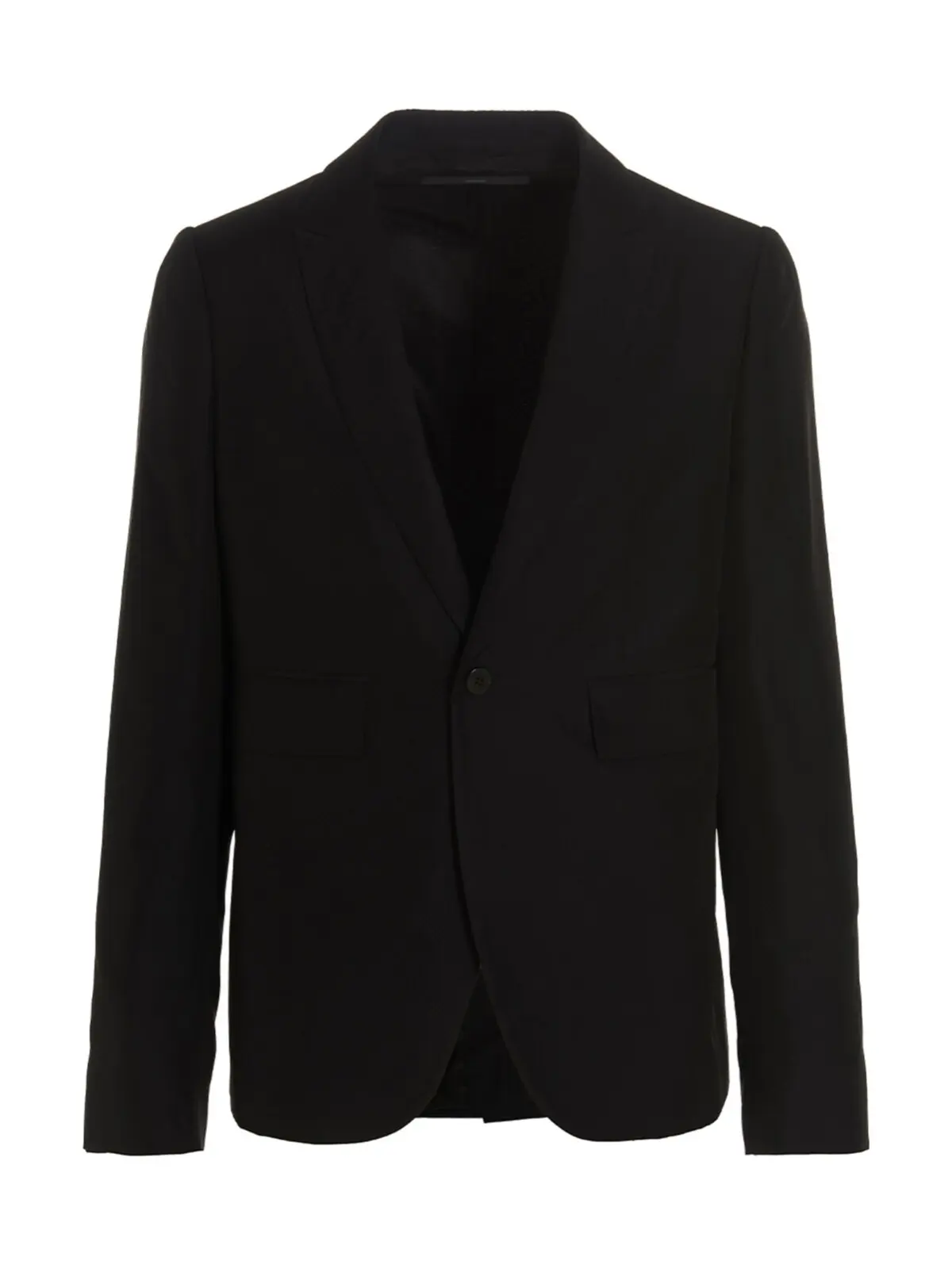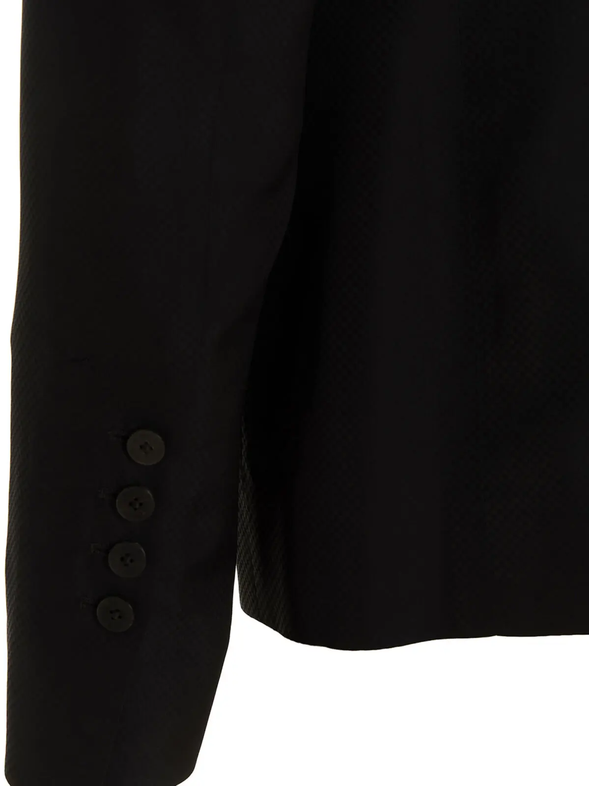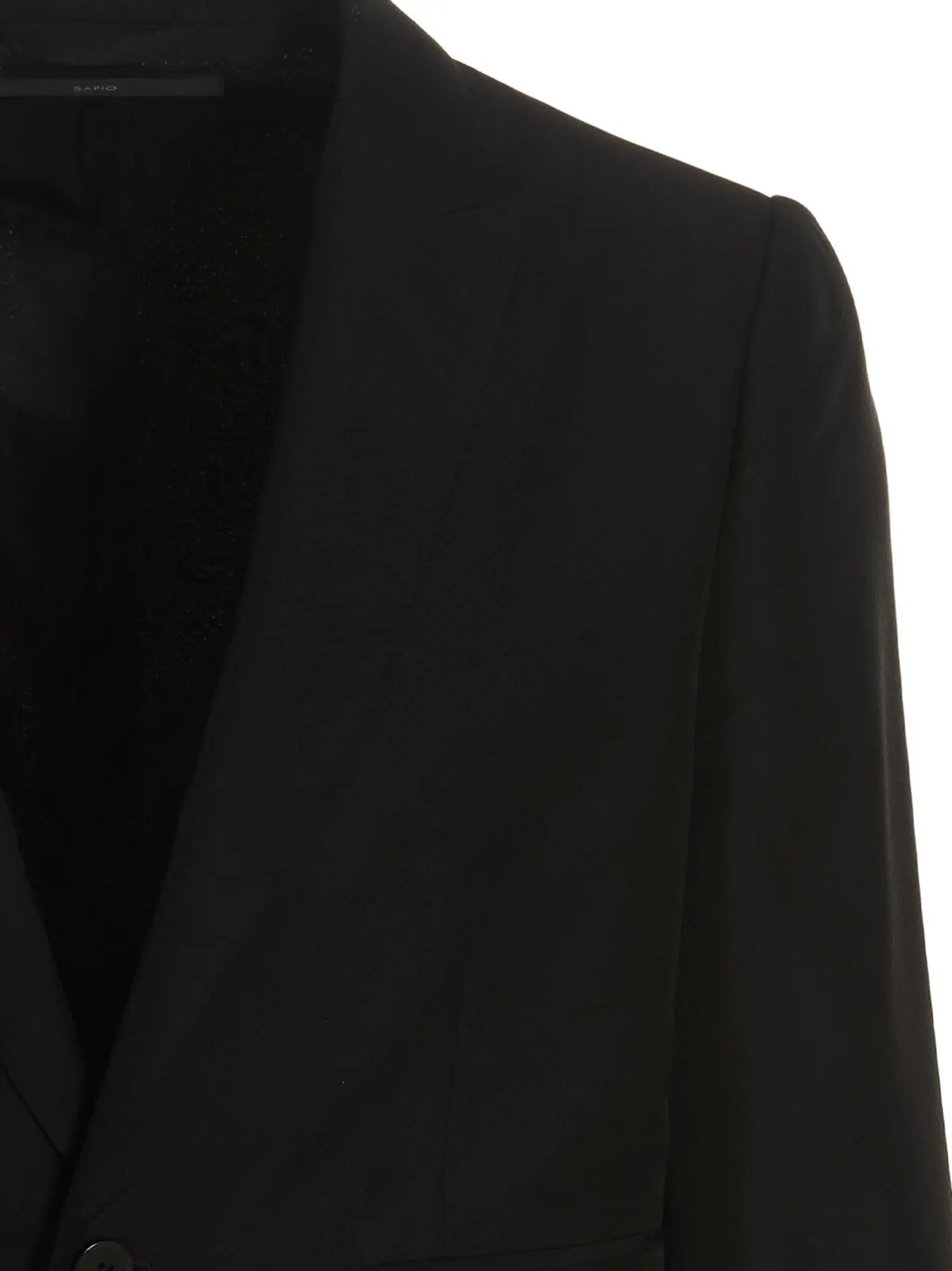Чорний чоловічий блейзер Jacquard Sapio з однорядним застібанням на гудзики, структурованими плечима, кишенями, довгими рукавами та розрізом на спині. Виготовлений з 100% купро.