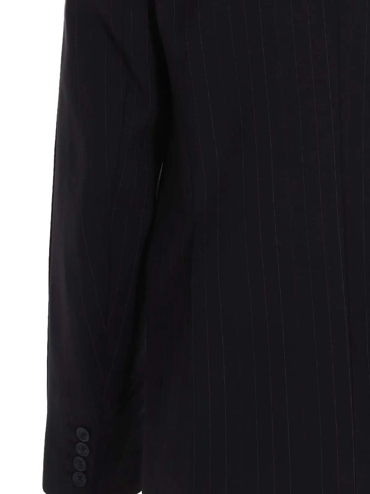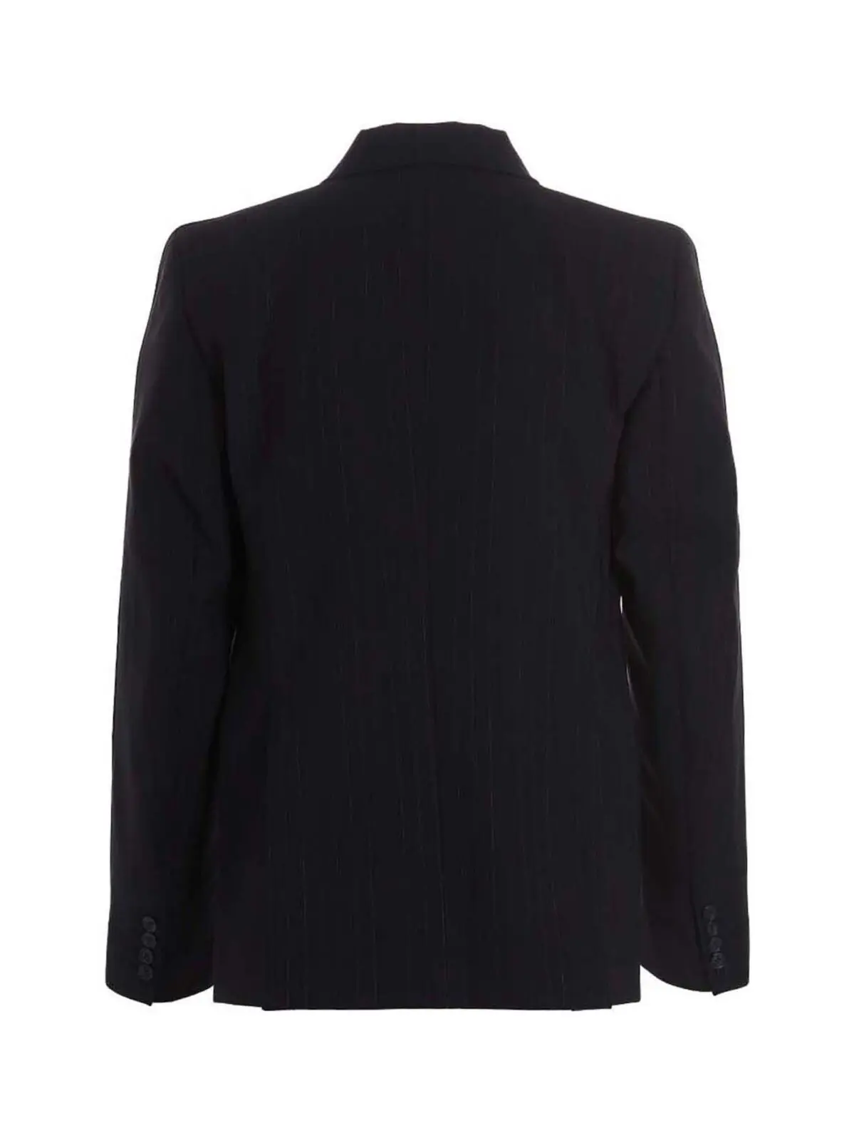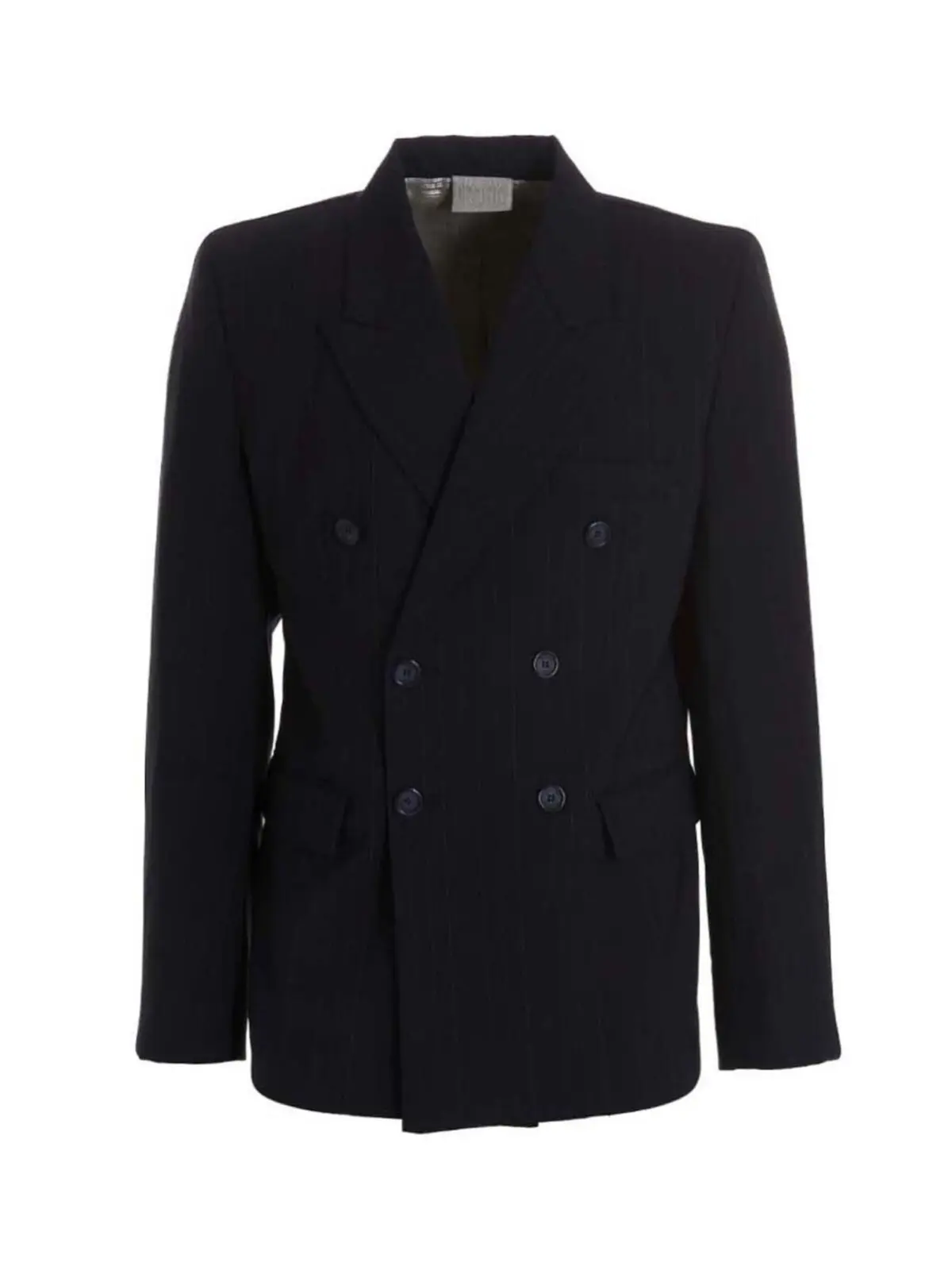 Чоловічий блейзер Tailored Vtmnts виготовлений з еластичної вовни преміум-якості. Він має синій колір та неперевершений дизайн з багатокольоровими лацканами. Цей блейзер має подвійний ряд гудзиків, клапанні кишені та пікові лацкани. Крім того, він оснащений контрастною підкладкою та подвійним розрізом ззаду. Виготовлений з 98% віргінської вовни та 2% еластану, цей блейзер поєднує в собі комфорт, стиль та якість.