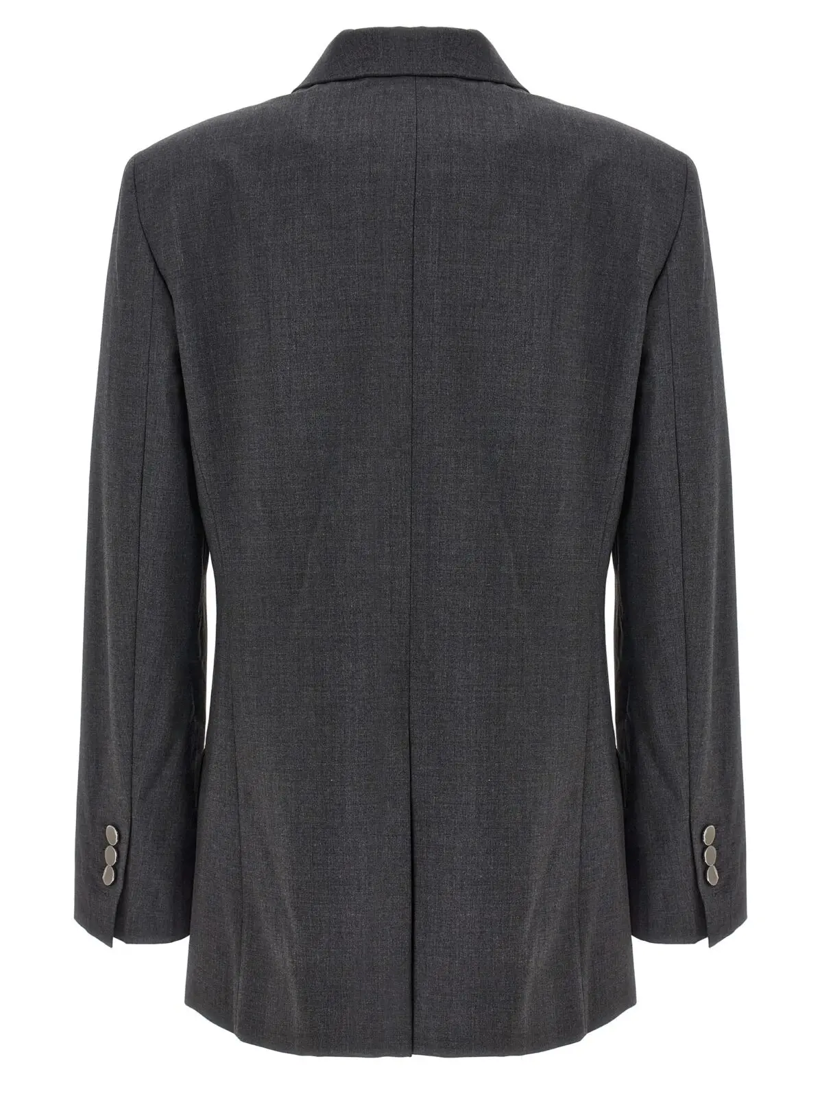 Практичність також на висоті: кишені дозволять вам мати під рукою всі необхідні дрібниці. Сірий колір робить цей блейзер універсальним вибором, який легко поєднується з різними елементами гардеробу.