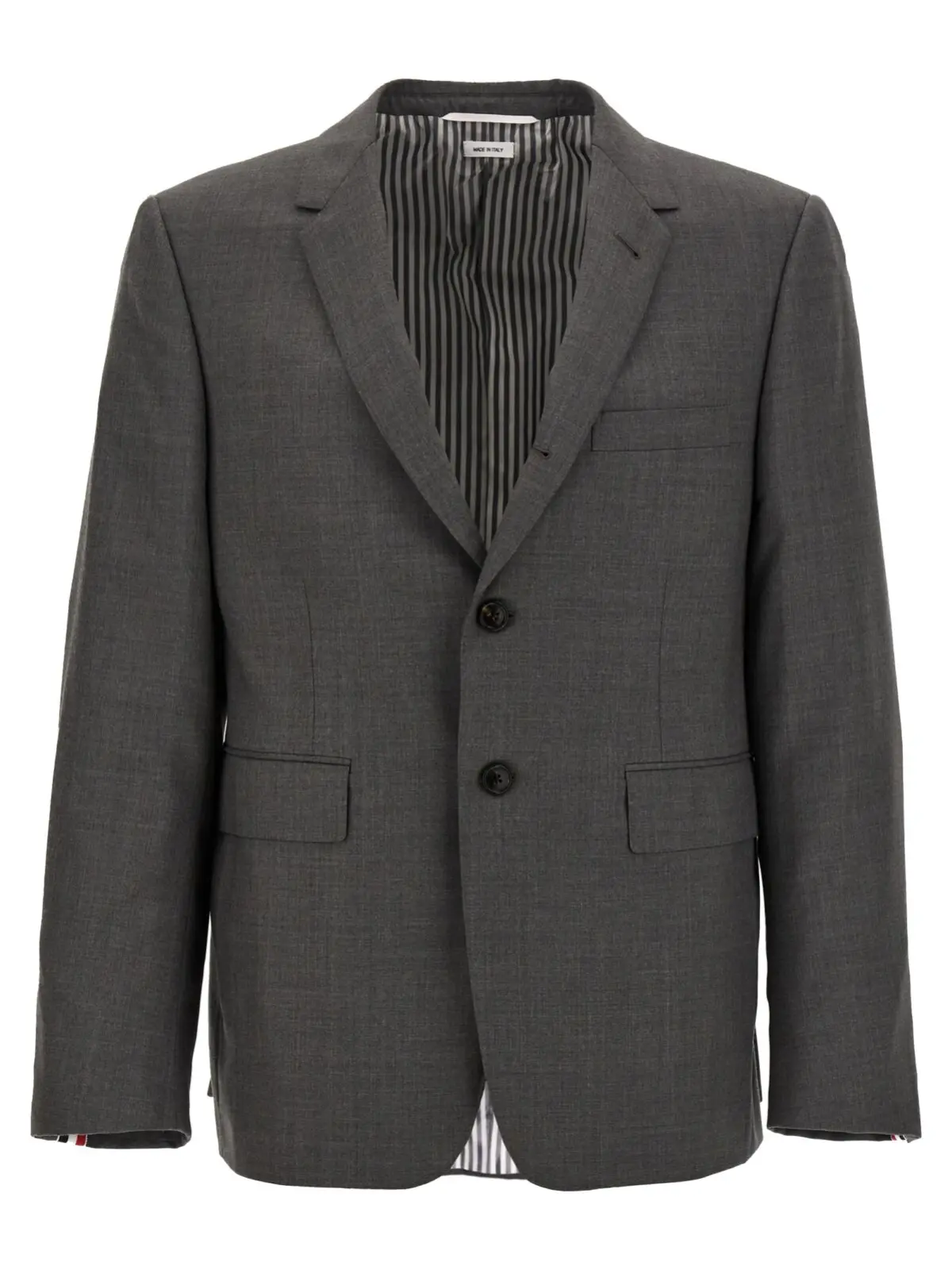 Блейзер Thom Browne Classic Sport Coat – елегантність і стиль у кожній деталі! Сірий чоловічий блейзер ‘Classic Sport Coat’ зроблений з високоякісної супер 120s вовни твіл, що забезпечує комфорт і довговічність. Однобортний крій з класичним застібанням на ґудзики додає образу вишуканості. Практичні кишені дозволяють зручно зберігати необхідні дрібниці, а довгі рукави та вентиляційні отвори ззаду забезпечують свободу рухів.