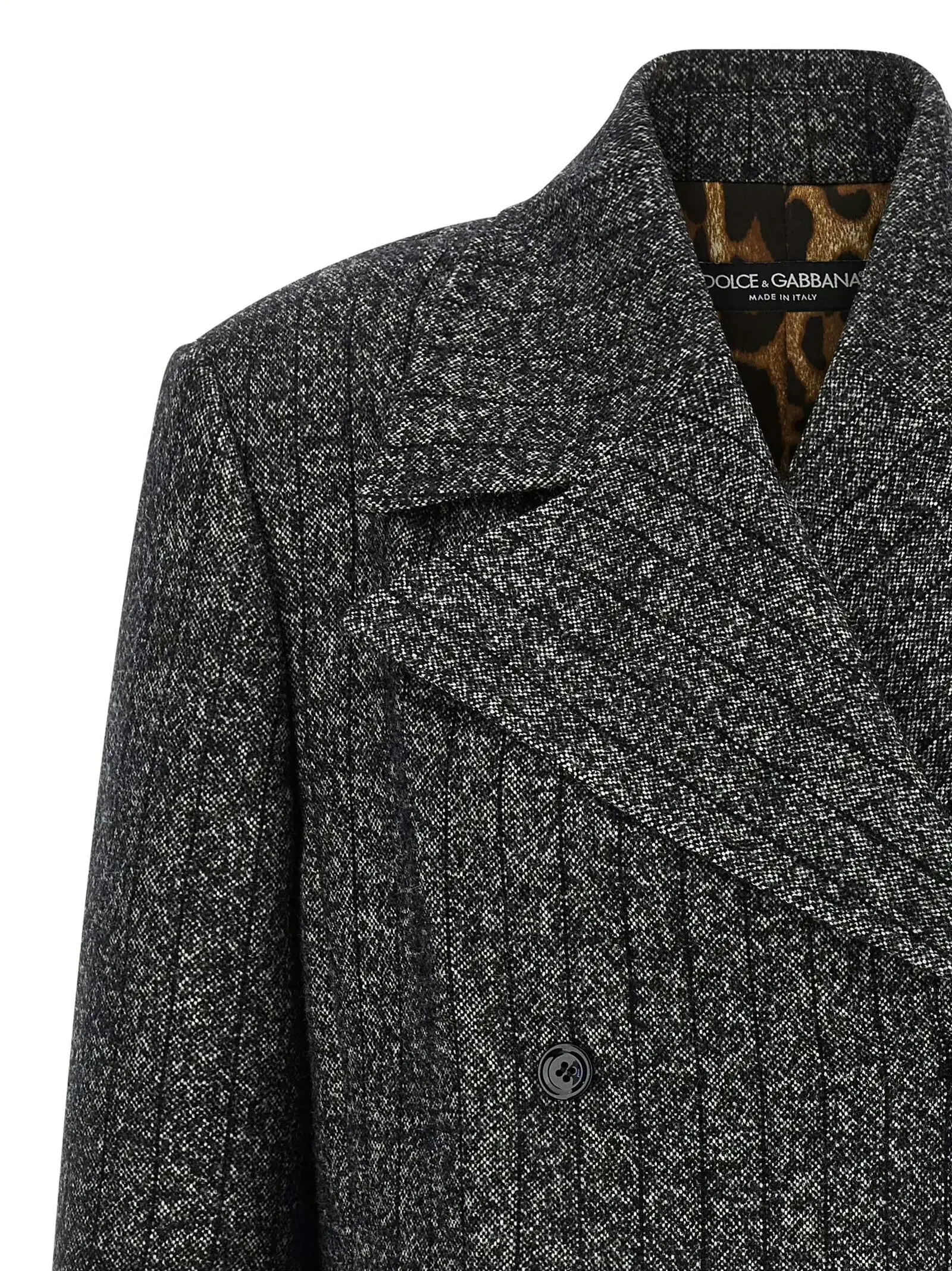 Вишуканий жіночий блейзер з вовни в чорно-білу смужку поєднує інноваційний дизайн із класичною елегантністю, підкреслюючи статус і витонченість власниці. Двобортна модель з максі коміром, дзеркальними лацканами та підкладкою з тканини з анімалістичним принтом забезпечує стиль та універсальність для будь-яких подій.