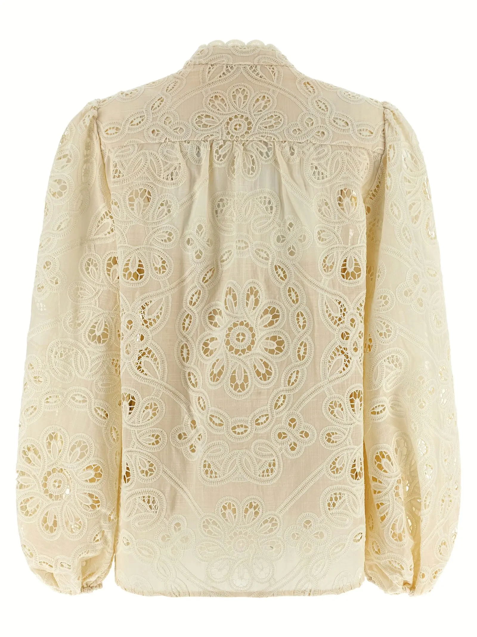 Блуза Rhiannon виконана з вишуканої бавовни з вишивкою та перфорацією, поєднує елегантний дизайн із скалопованим високим коміром і об’ємними рукавами на еластичних манжетах. Універсальна та стильна, вона підкреслює статус і бездоганний смак, забезпечуючи комфорт і інноваційність у кожному образі.