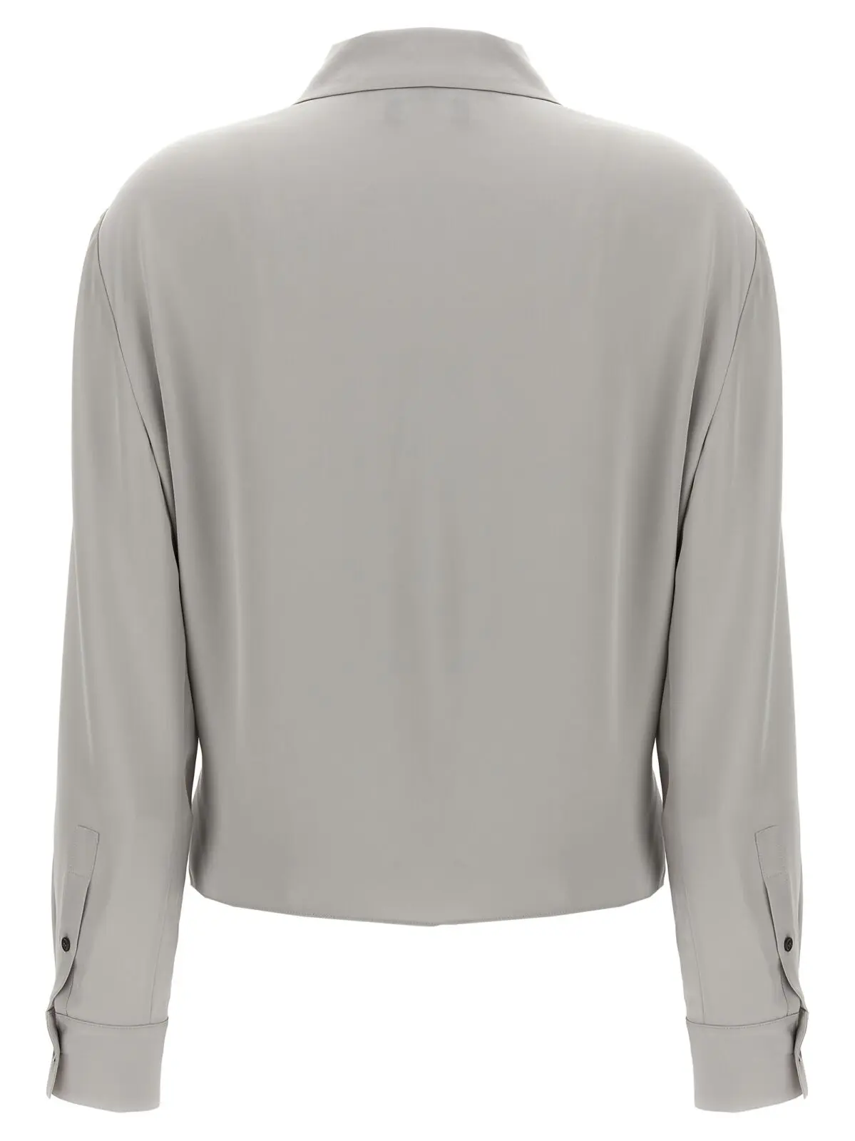 Елегантна сіра блуза з шовку від Theory PK Label вражає своїм вишуканим дизайном. Глибокий V-подібний виріз та переднє перехрещення підкреслюють жіночність, а комір з гострими лацканами надає класичного шарму. Довгі рукави з манжетами забезпечують елегантний вигляд, а 100% шовк гарантує комфорт і легкість. Ця універсальна блуза стане ідеальним доповненням до будь-якого гардеробу, підкреслюючи статус та стиль. Виробництво відповідає екологічним стандартам, що робить її не лише красивою, а й відповідальною вибіркою.