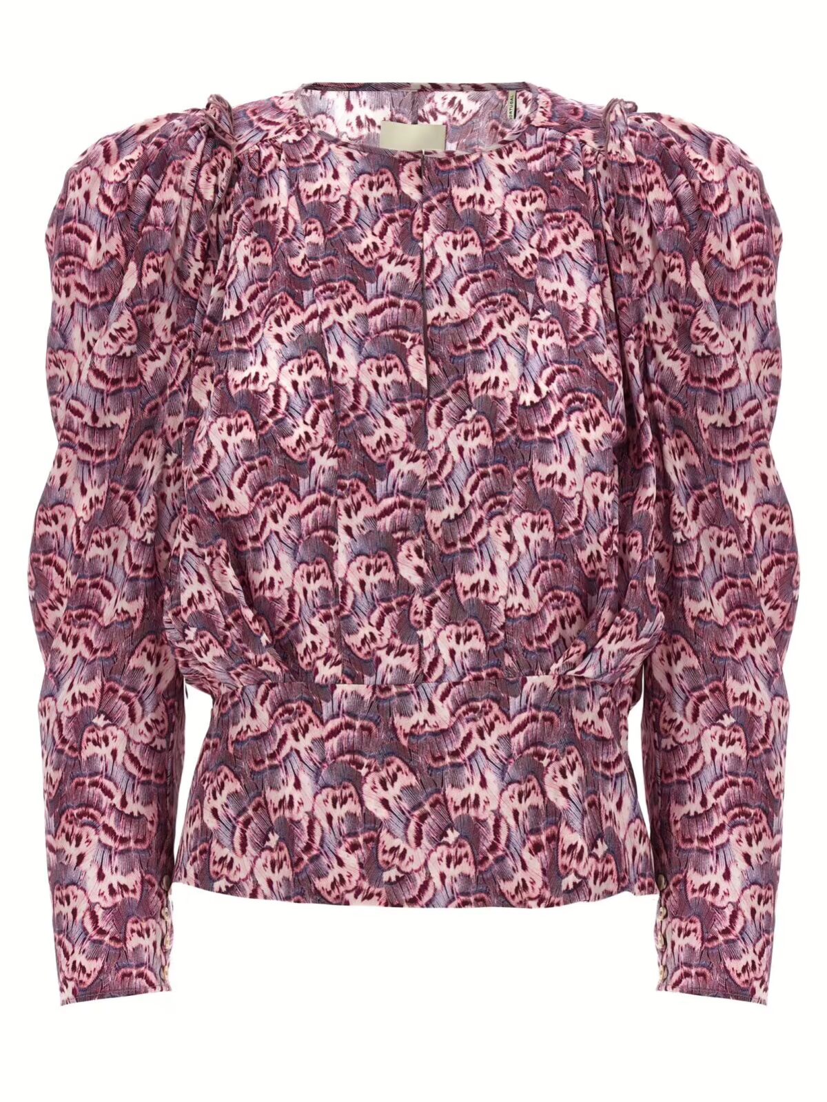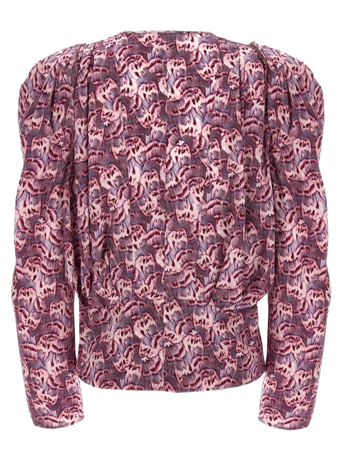 Відчуйте неперевершений комфорт та стиль з блузою Zarga від Isabel Marant. Ця розкішна багатокольорова блуза, виготовлена з ніжного шовку з додаванням еластану, забезпечує ідеальне поєднання елегантності та зручності. Завдяки глибокому V-подібному вирізу, довгим рукавам та оригінальним пухким плечовим бретелям, ви будете виглядати стильно у будь-якій ситуації. Склад: 91% шовк, 9% еластан.