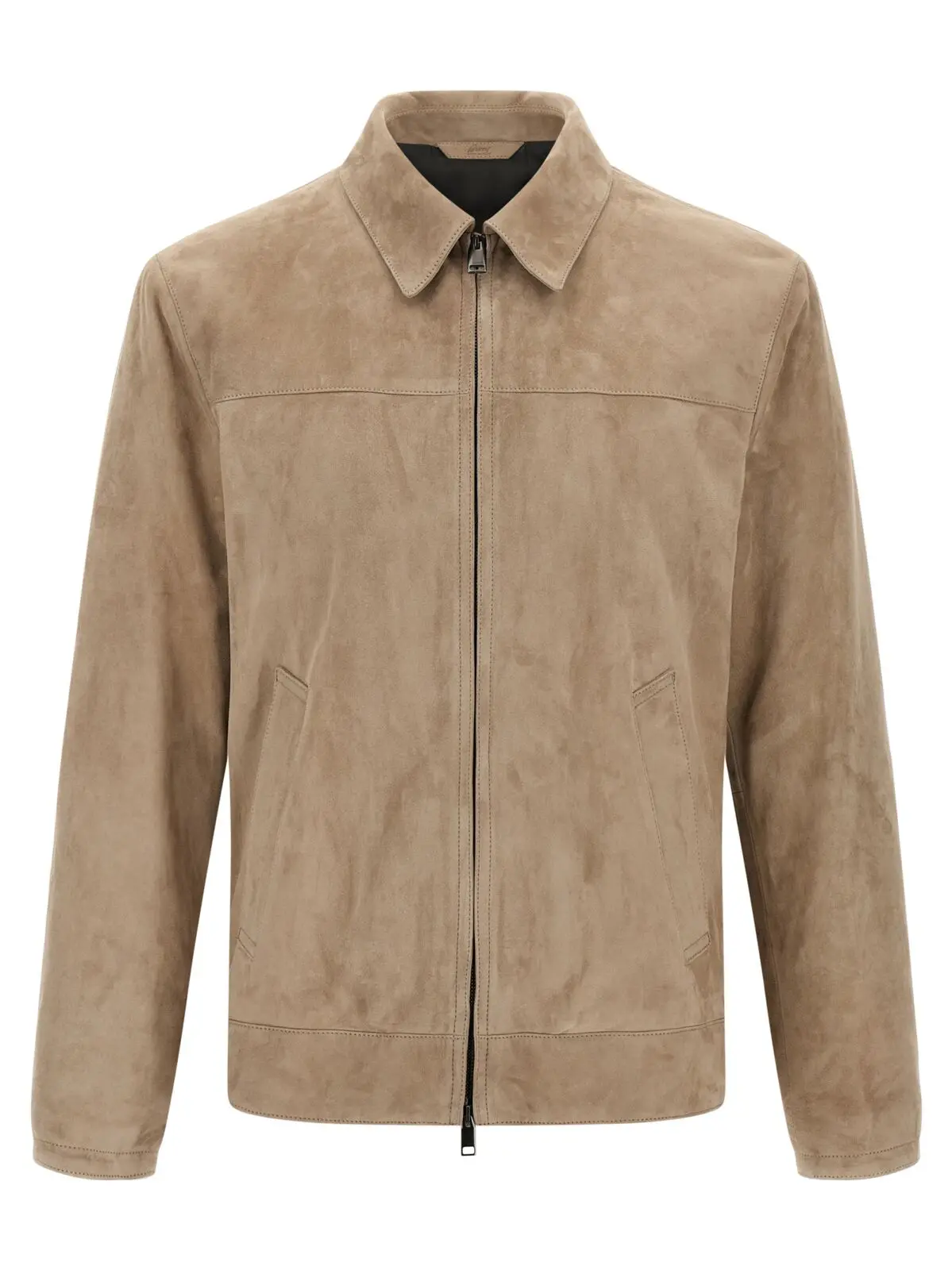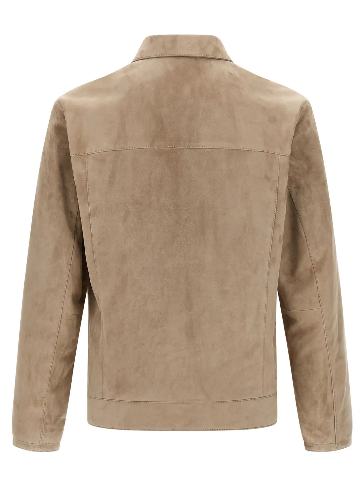 Вишуканий чоловічий блузон із бежевої замші, оздоблений підкладкою з купро, поєднує в собі бездоганну якість та інноваційний дизайн із застібкою на блискавку та класичним коміром сорочки. Універсальний та стильний виріб, що підкреслює статус і неповторний смак.