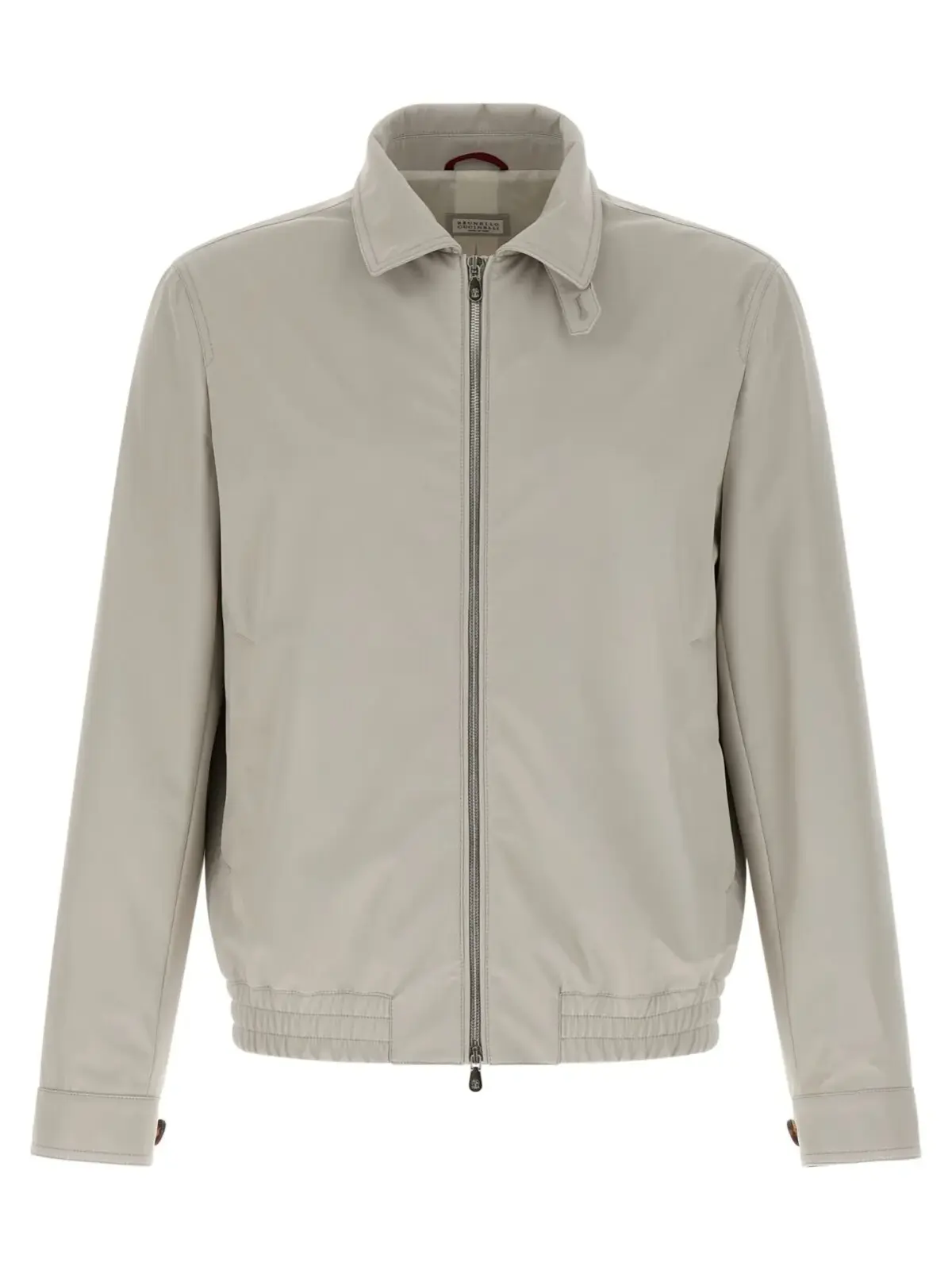 Чоловічий бомбер Brunello Cucinelli виготовлений із водовідштовхувального нейлону з еластичною мембраною, що забезпечує комфорт і захист від вологи. Вишуканий дизайн із коміром-сорочкою та застібкою на блискавку підкреслює сучасний стиль і статус, доповнений практичними деталями та легкістю завдяки підкладці з купро.