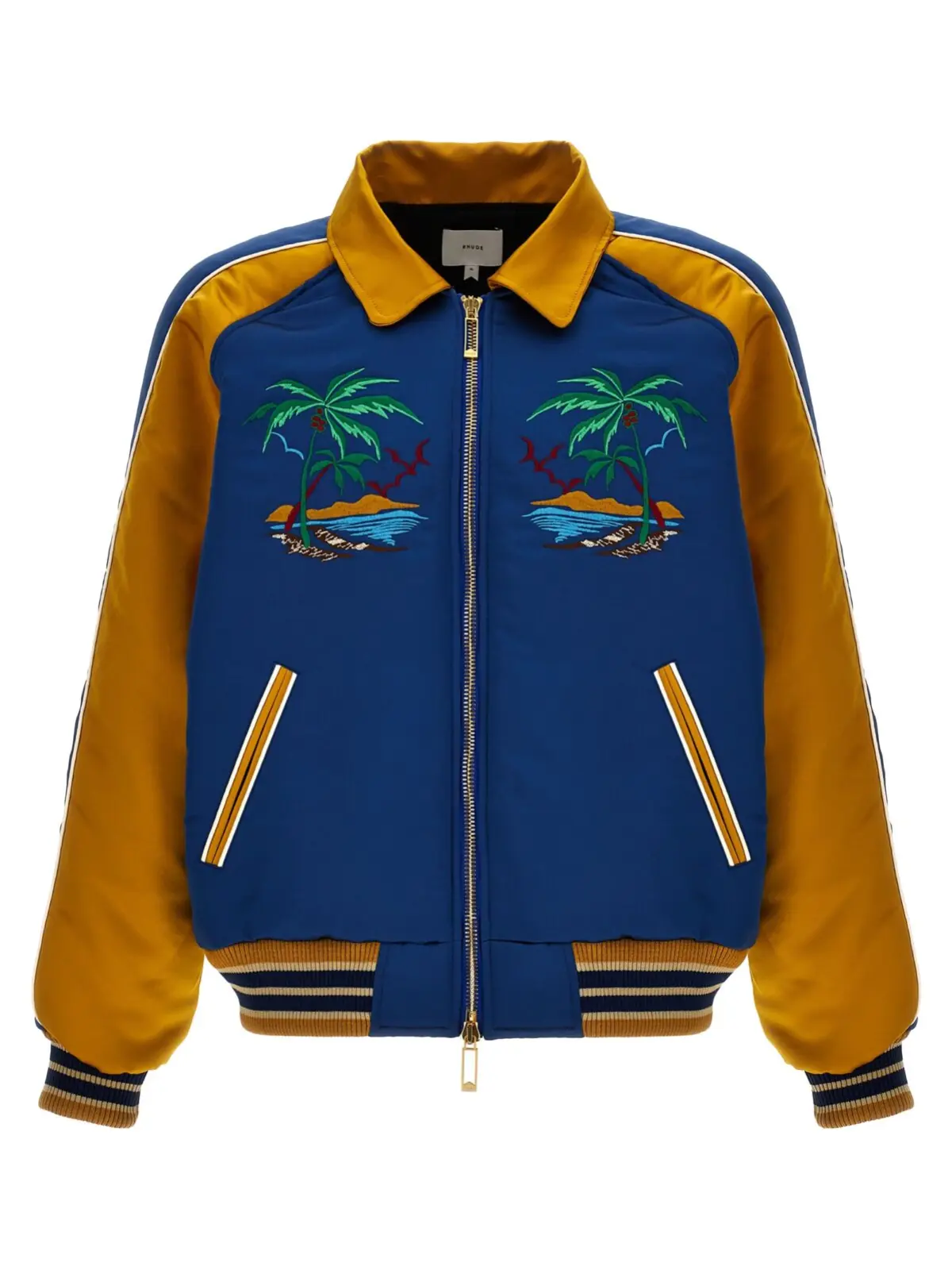 Багатокольоровий чоловічий бомбер Palm Eagles Souvenir зі сатиновою тканиною та вишивкою усередині. Застібається на блискавку, має кишені та довгі рукава з вязаними манжетами. Виготовлений з 100% поліестеру.