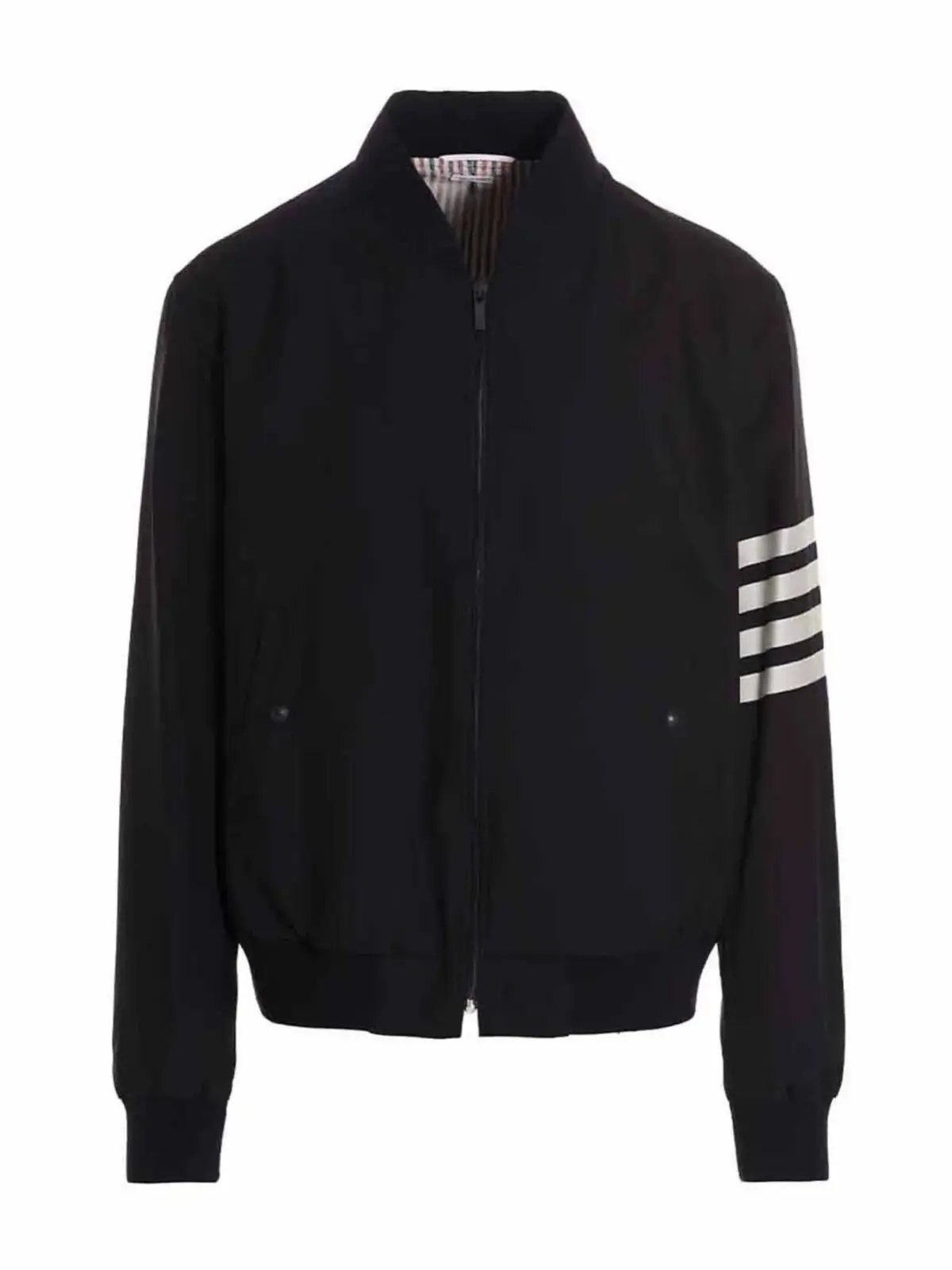 Бомбер Thom Browne 4 Bar вишукано поєднує елегантність та функціональність. Виготовлений з 100% вовни, цей чоловічий жакет забезпечує максимальний комфорт і тепло. Особливий акцент на рукаві з характерними смужками підкреслює статус та стиль власника. Завдяки застібці на блискавці та практичним кишеням, бомбер стає універсальним елементом гардеробу, що легко адаптується до будь-якого випадку. Висока якість матеріалів і продуманий дизайн роблять цю модель інноваційним вибором для сучасного чоловіка.
