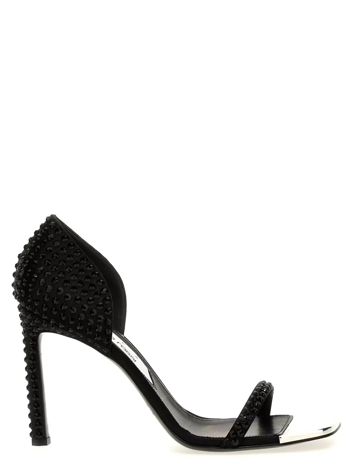 Босоніжки Sergio Rossi в колаборації з AREA ‘Area Dagger’ – це втілення розкоші та стилю. Виконані з чорного атласу, прикрашені блискучими стразами, ці босоніжки стануть королівським акцентом у вашому образі. Металевий елемент на носку додає вишуканості, а підбори підкреслюють витонченість силуету. Sergio Rossi x AREA ‘Area Dagger’ – ідеальний вибір для незабутнього вечора.