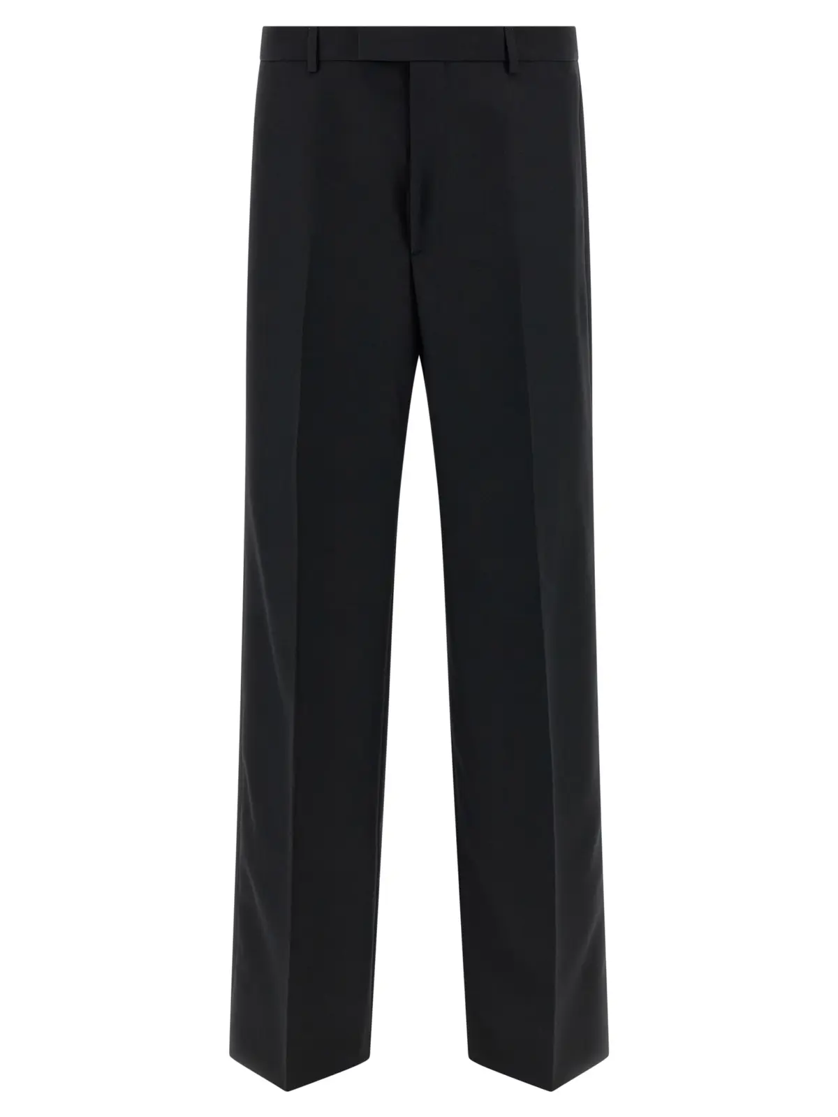 Чорні чоловічі брюки з панамської технічної тканини вирізняються приталеним кроєм і елегантною розтягнутою складкою, що підкреслює досконалість силуету. Вишукана застібка на гачок і блискавку забезпечує комфорт і надійність, а функціональні кишені додають практичності. Вишита в тон логотипна деталь на спинці надає виробу статусності, поєднуючи інноваційність матеріалу з універсальністю стилю для сучасного образу вишуканості.