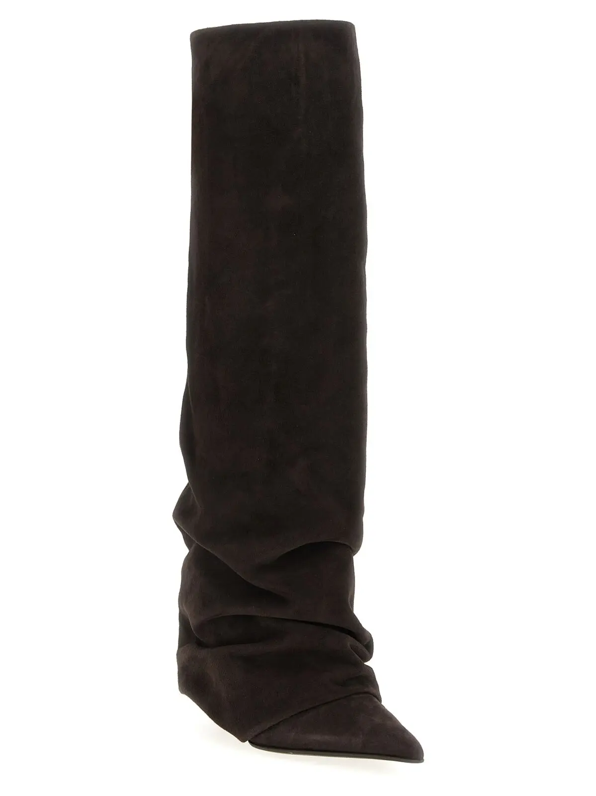 Елегантні жіночі черевики коричневого кольору з витонченим гострим носком та вишуканим великим відворотом, натхненним стилем широких джинсів. Виготовлені зі 100% натуральної замші та шкіряної підошви, вони поєднують інноваційність дизайну, бездоганну якість та неперевершену універсальність для створення статусного образу.