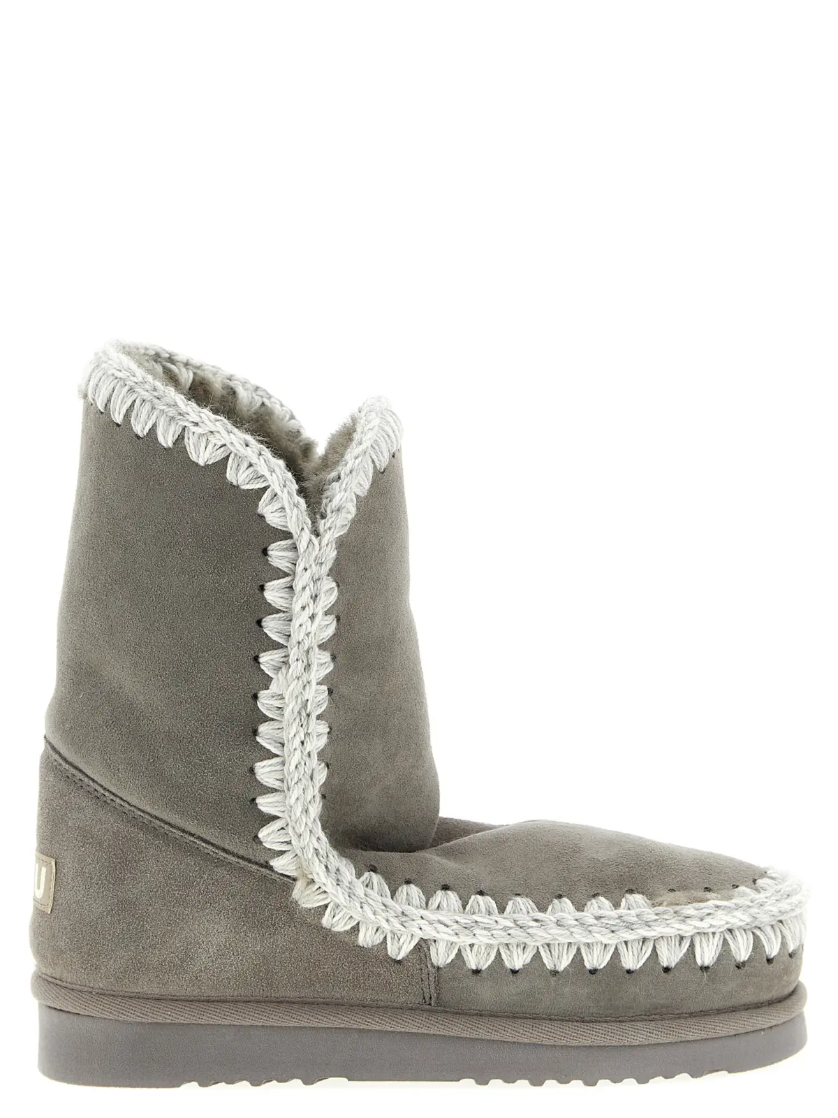 Сірі жіночі черевики Eskimo 24, виготовлені з натуральної овечої замші, поєднують витонченість і тепло завдяки хутряній підкладці. Вишукана видима строчка, гумова підошва та делікатний логотип на задній частині підкреслюють преміальну якість і сучасний стиль, що робить цю модель ідеальним вибором для будь-якого образу.