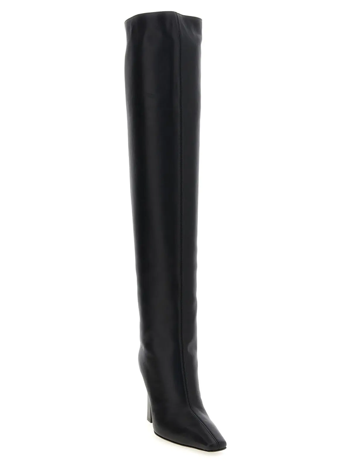 Вишукані жіночі черевики Janiee Plus від Giuseppe Zanotti виконані з натуральної телячої шкіри найвищої якості, поєднують інноваційний дизайн з елегантністю: подовжений квадратний носок, висока підборка з металевою деталлю та шкіряна підошва створюють вишуканий образ, що підкреслює статус і стиль.