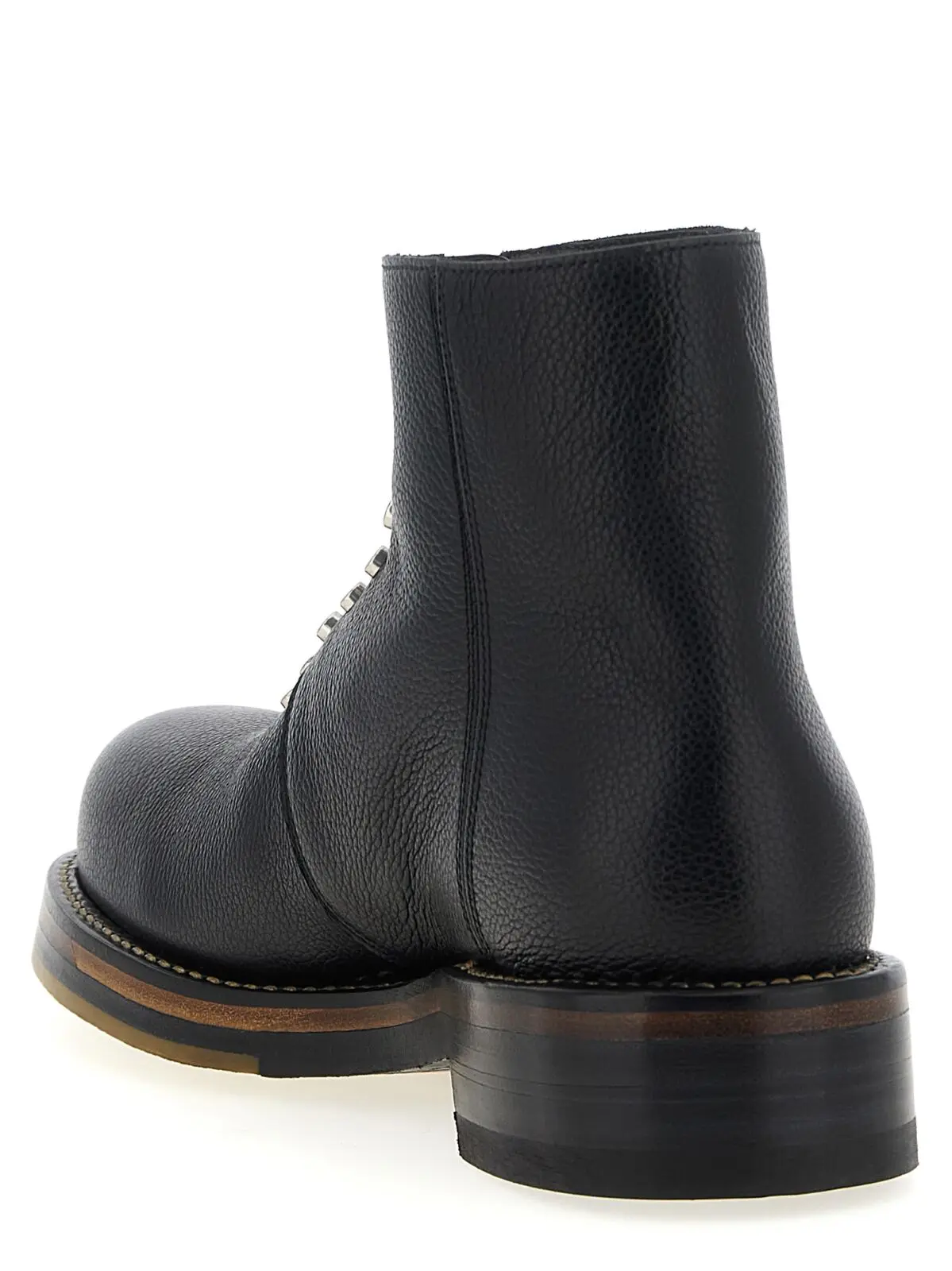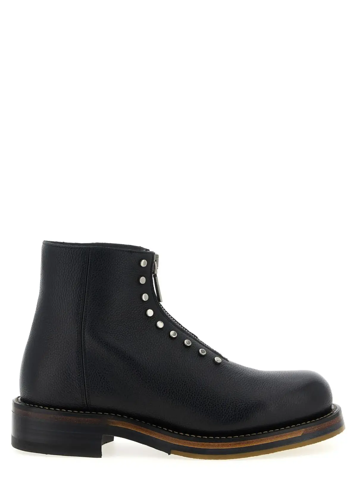 Чорні чоловічі черевики з повнорозмірної телячої шкіри вирізняються витонченим дизайном із круглим носком та фронтальною застібкою на блискавку з металевими деталями. Ручна робота, багатошарова підошва зі шкіри та гуми з подвійним швом забезпечують неперевершену якість, комфорт і стиль, що підкреслюють статус і елегантність кожного образу.