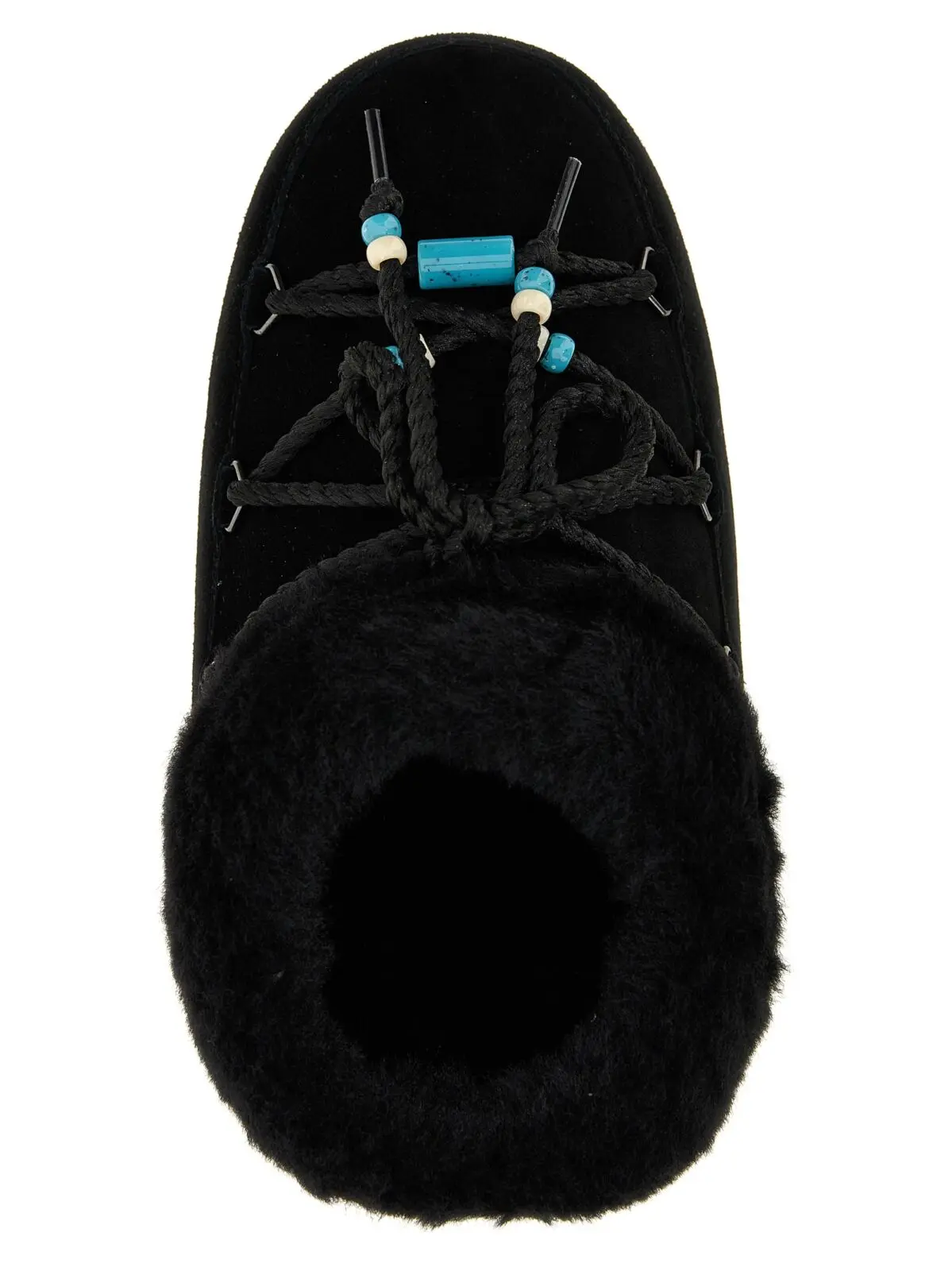 Черевики Moon Boot Mule suede beads – це втілення елегантності та комфорту. Виготовлені з високоякісного телячого замшу та овечого хутра, вони забезпечують тепло та затишок у холодну погоду. Унікальний дизайн з перекриваючими трубчастими шнурками та декоративними намистинами підкреслює індивідуальність. Неслизька гумова підошва гарантує надійність на будь-якій поверхні. Ці черевики ідеально підходять для будь-якого образу, надаючи статусу та стилю.
