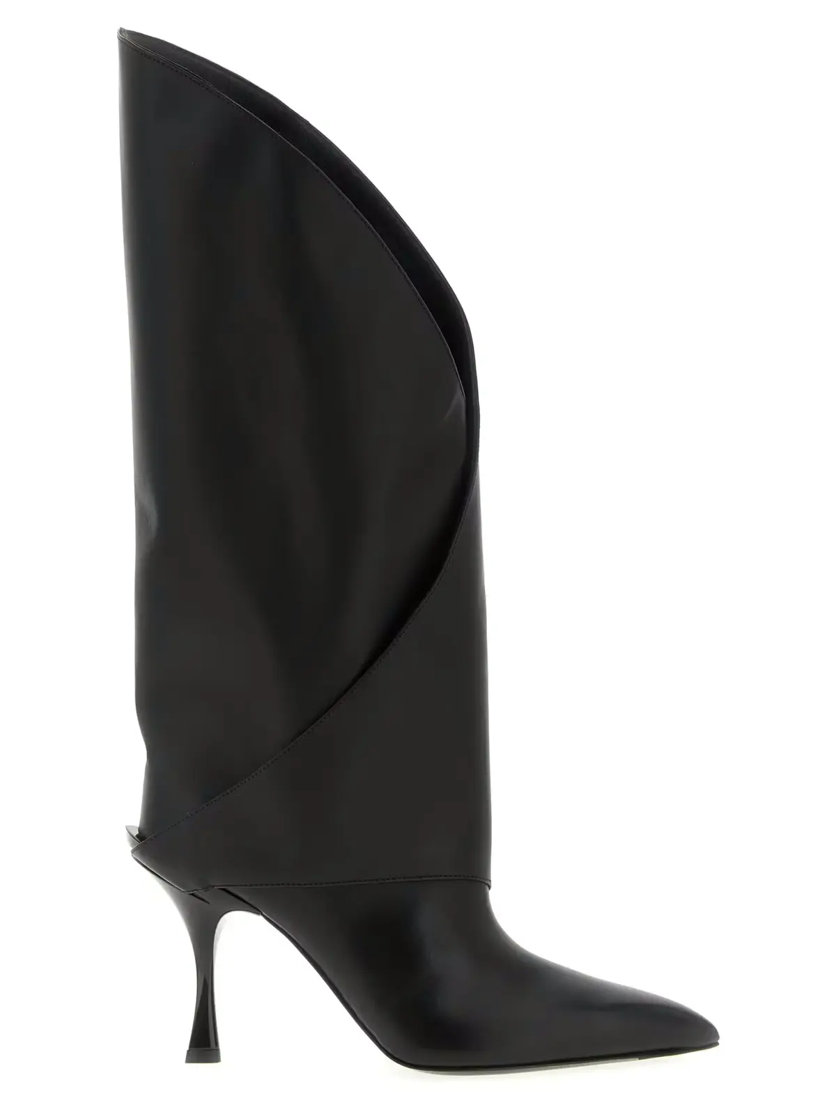 Вишукані жіночі черевики Twist виконані з 100% телячої шкіри найвищої якості, поєднують інноваційний дизайн із класичною елегантністю. Чорний колір, гострий носок, підкручений силует у стилі гейтер та вигнутий лакований каблук підкреслюють статус і витонченість, забезпечуючи універсальність і комфорт у будь-якому образі.