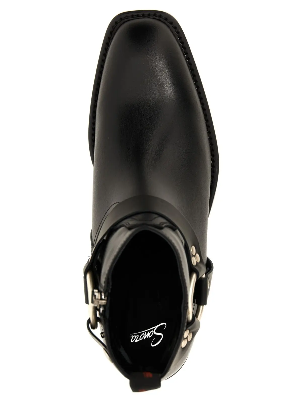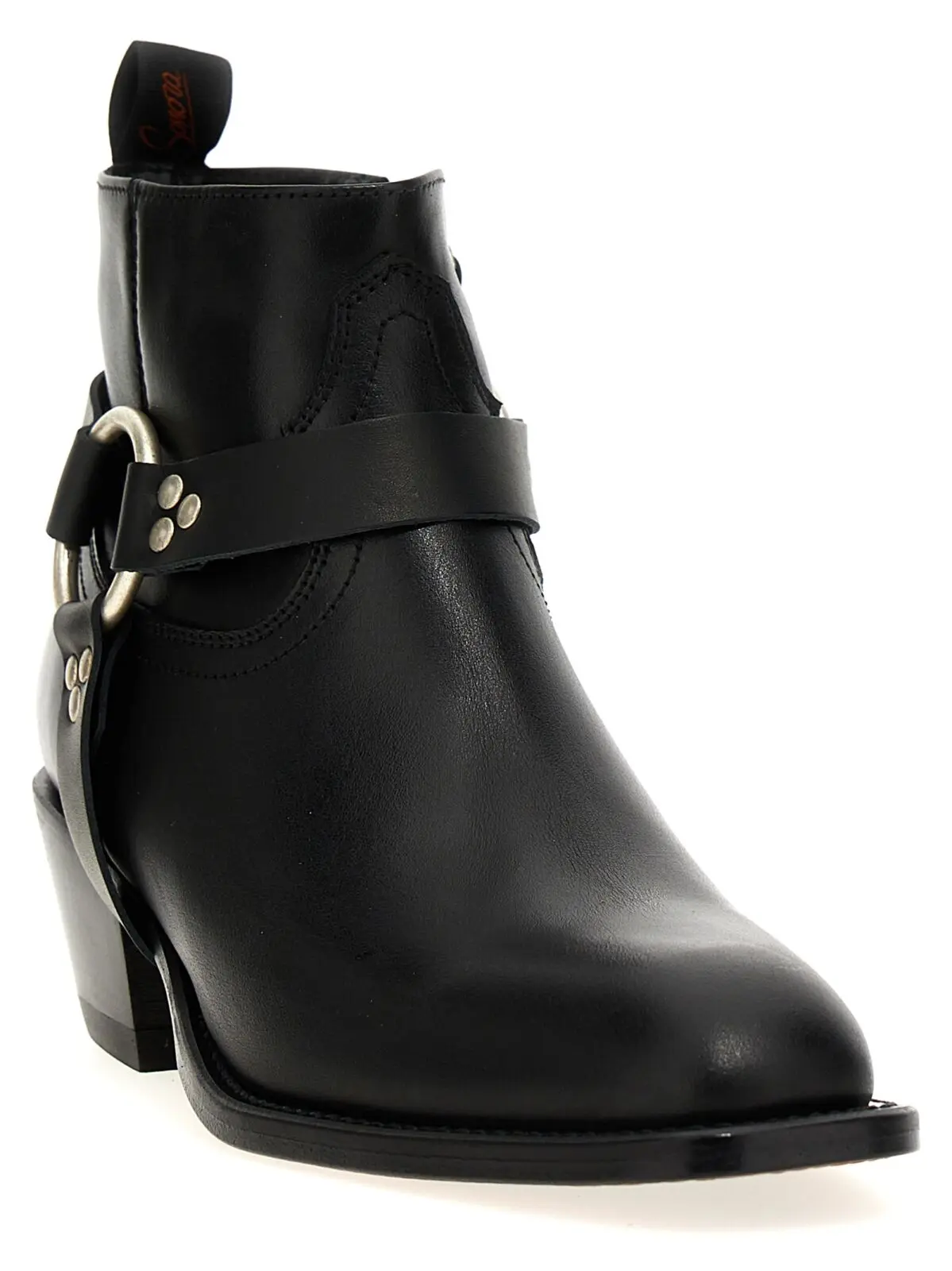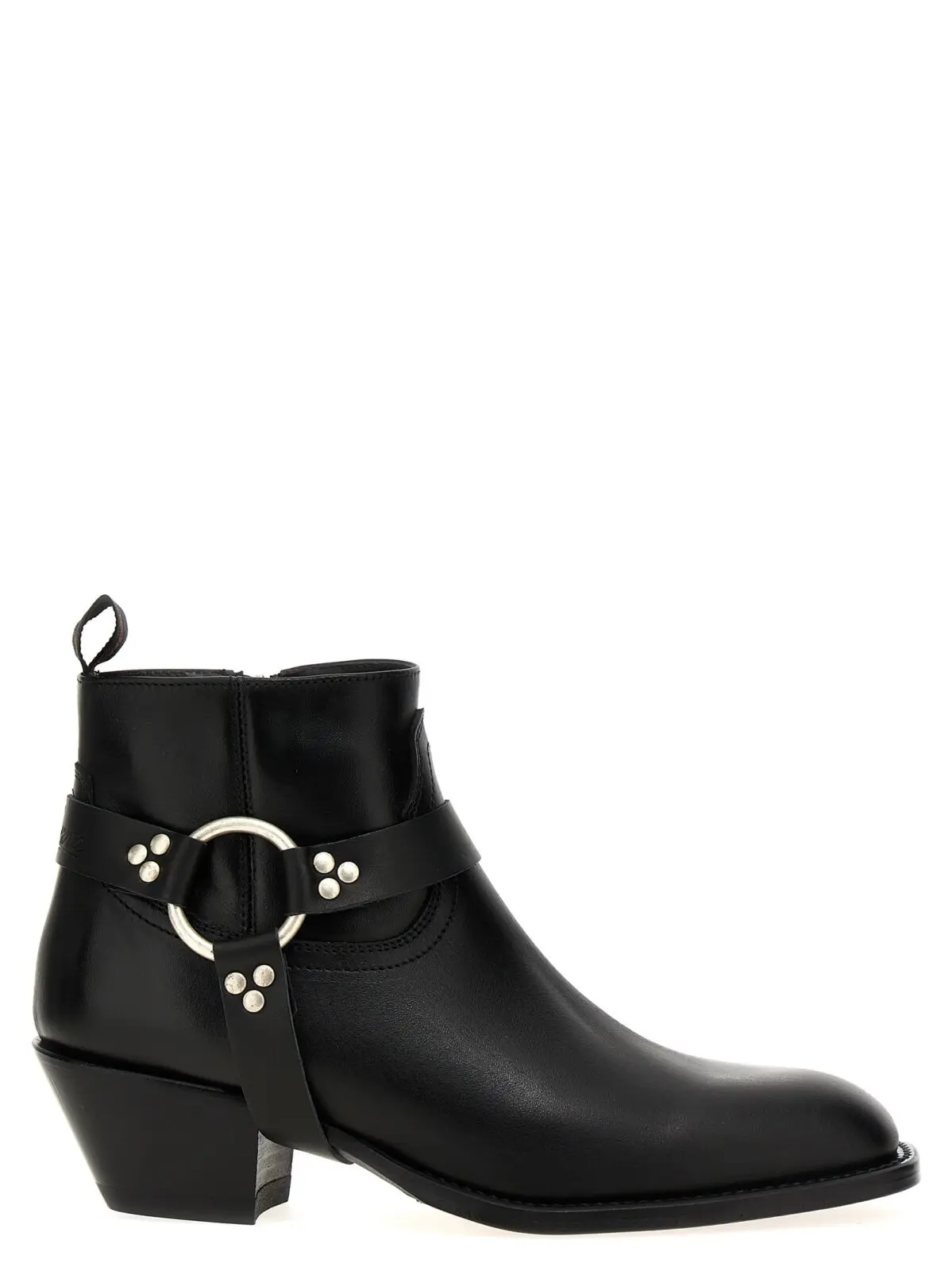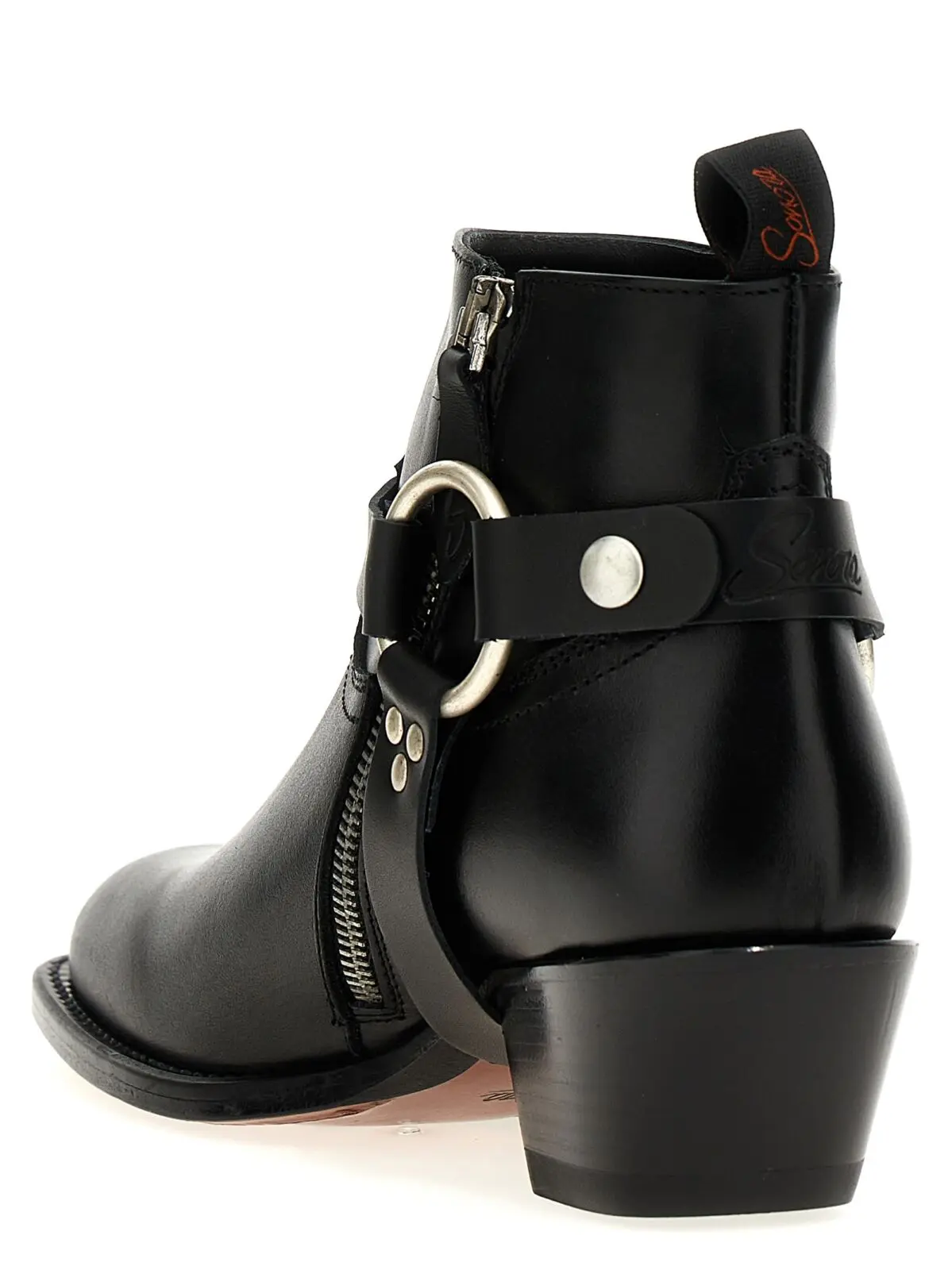 Чорні жіночі чоботи на щиколотку Dulce Belt Sonora виготовлені з натуральної шкіри з деталлю на щиколотці, підбором, блискавкою з боку.