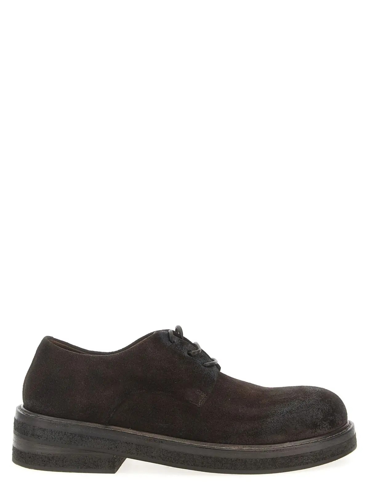 Вишукані чоловічі дербі Marsèll Parrucca в коричневому кольорі виконані з натуральної оливленої замші, поєднують багаторівневу підошву з вручну пофарбованих шарів натуральної шкіри, гуми та парагуму, забезпечуючи неперевершену якість, комфорт і стиль, що підкреслює статус і витонченість власника.