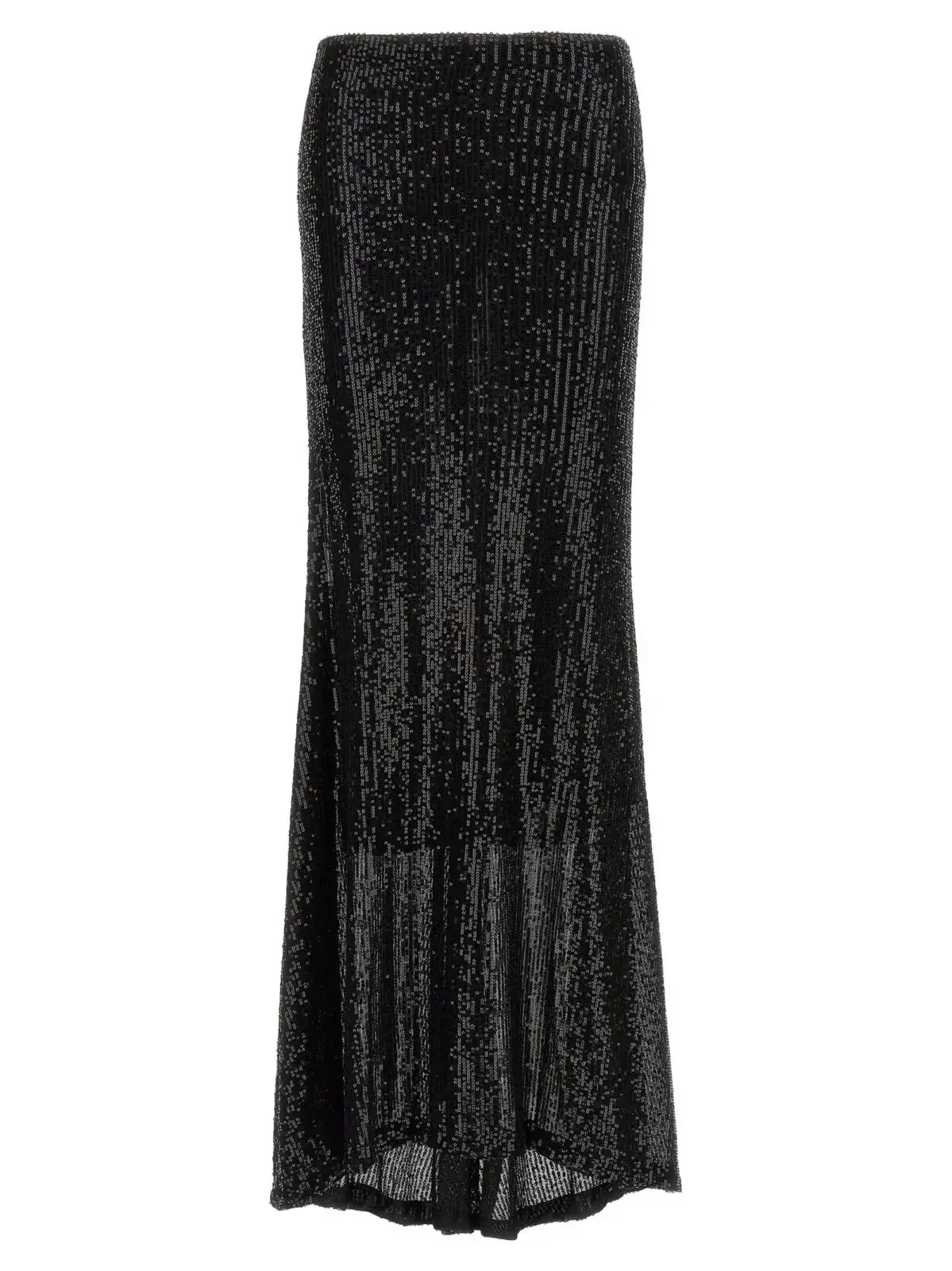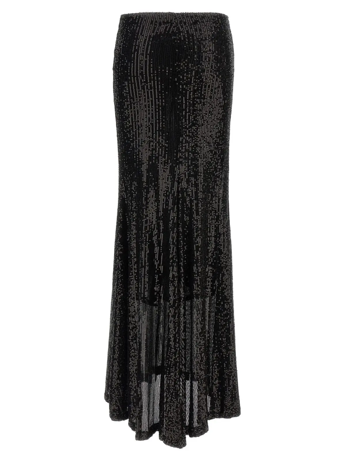 Довга спідниця від ‘Maria Cristina Le Twins’ виблискує за рахунок чорної паєткової тканини. Еластичний пояс забезпечує зручну посадку, а розкльошений низ надає виробу струнку форму. Ця жіноча спідниця стане чудовим доповненням до вечірнього образу або святкового вбрання.