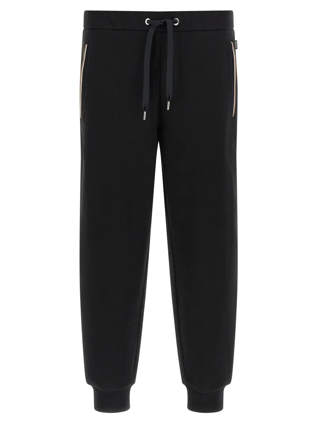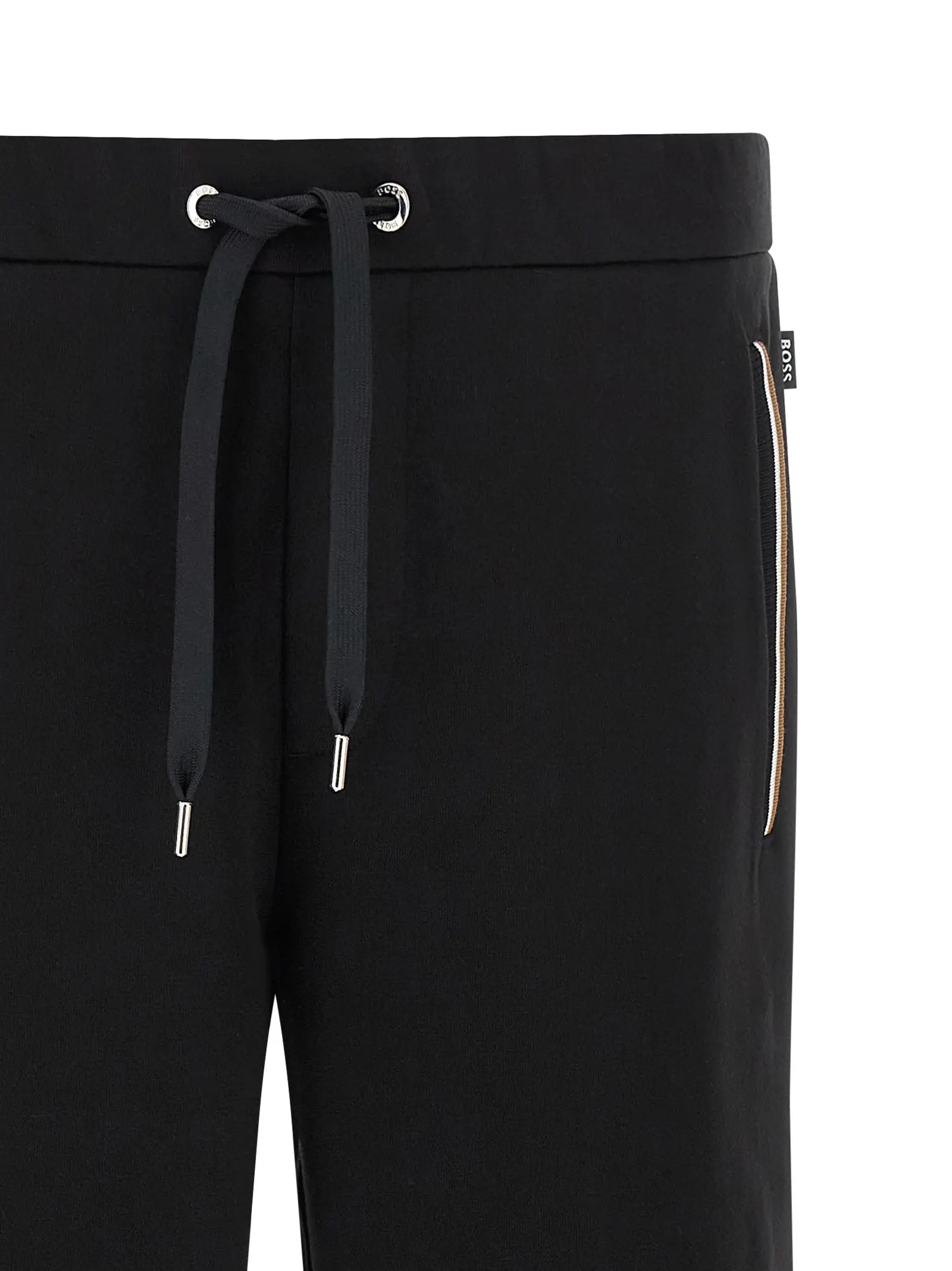 Трикотажна фактура з бічними кишенями та смугастими вставками. Склад зі 100% бавовни. Еластичний пояс із регульованим шнурком та трикотажні манжети.