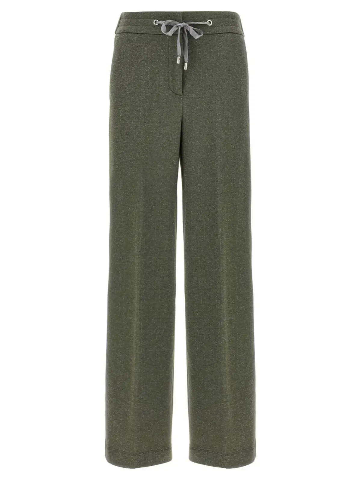 Жіночі джогери з флісової бавовни з усюди вкрапленням люрексу поєднують розкішну текстуру та комфорт завдяки регульованому поясу на еластичній тасьмі, застібці-блискавці, гачку та передній кнопці. Вільний прямий крій і практичні кишені підкреслюють універсальність і сучасний стиль, що додає впевненості та статусу будь-якому образу.