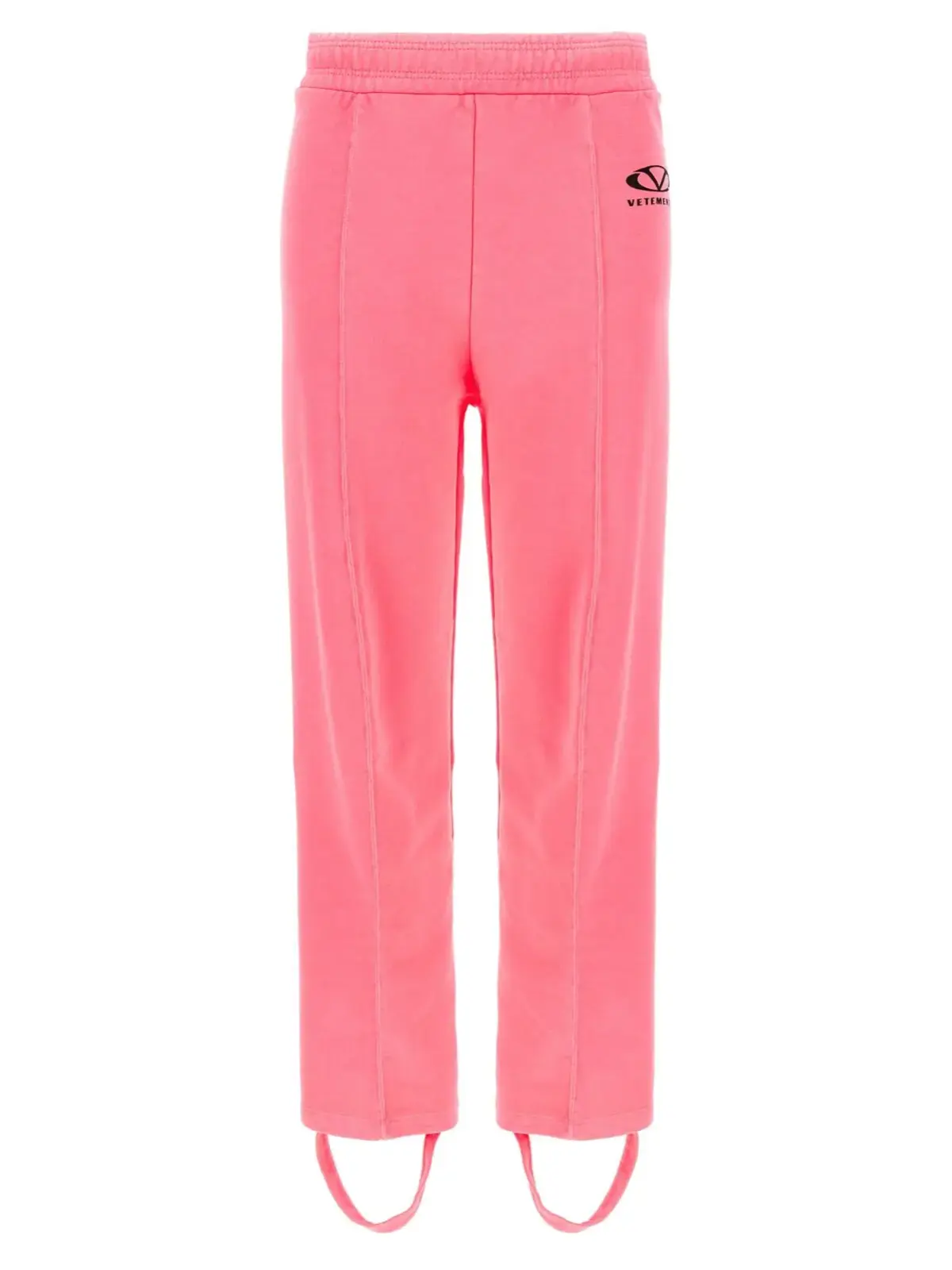 Ці джогери Vetements Oval Logo в елегантному рожевому кольорі виготовлені з м’якої і приємної на дотик бавовняної тканини з додаванням поліестеру, що забезпечує чудову зносостійкість. Вони мають стильний принт на передній частині і еластичний пояс з регульованим шнурком, що гарантує комфортну посадку. Гетри на нижній частині штанів додають естетичної завершеності, підкреслюючи статус і сучасний стиль. Цей виріб втілює інноваційність у поєднанні з універсальністю, що робить його ідеальним вибором для будь-якої модної прихильниці, яка цінує якість і екологічність.