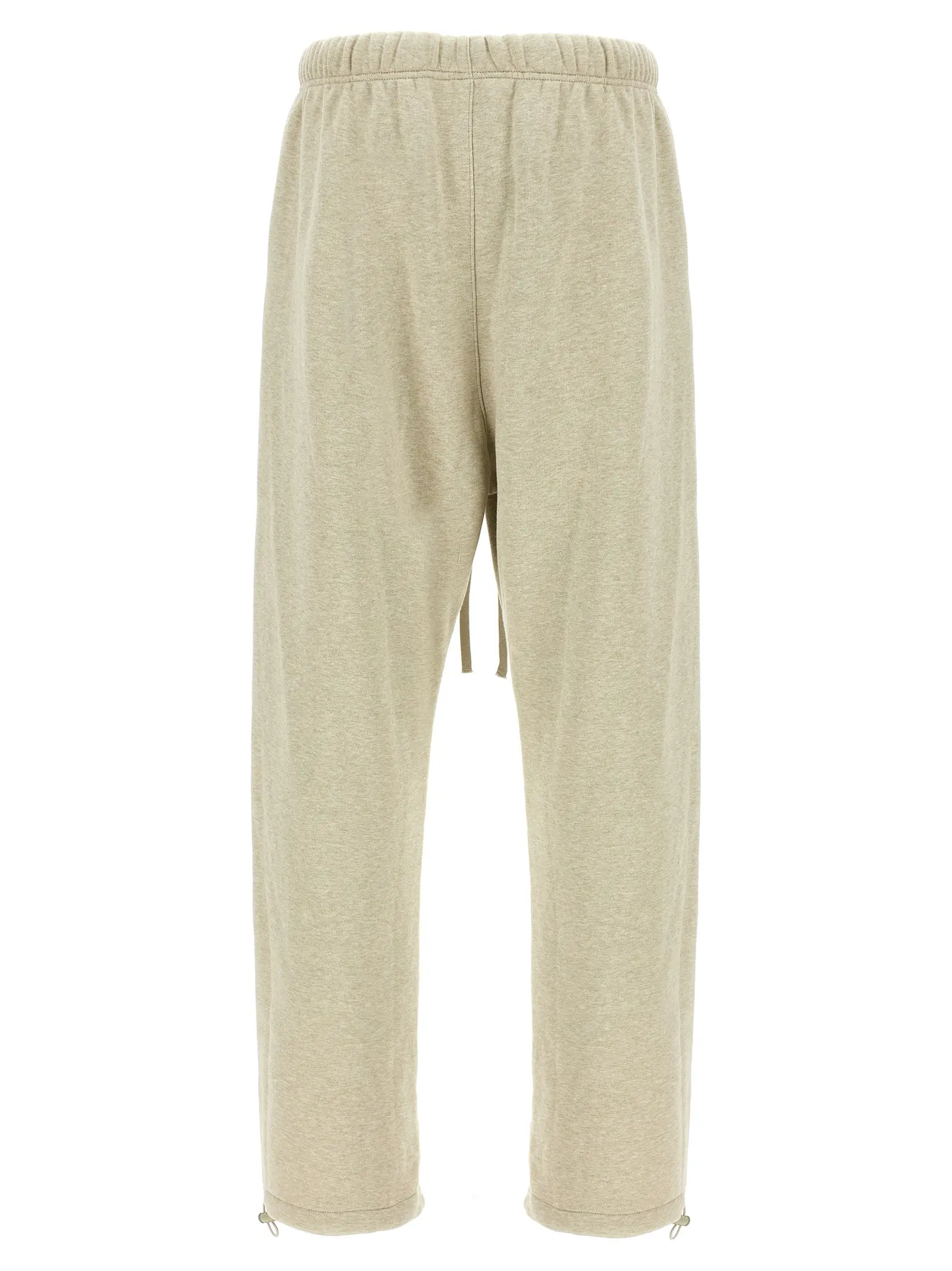 Чоловічі джоггери з колекції Fear Of God Essentials виготовлені з високоякісної меланжевої тканини з 80% бавовни та 20% поліестеру щільністю 380 г/м², що забезпечує комфорт і довговічність. Елегантний дизайн із тривимірним логотипом та контрастною силіконовою нашивкою підкреслює статус і стиль, а регульовані зав’язки на талії і низу, широкі прямі штани й практичні кишені додають універсальності й функціональності.
