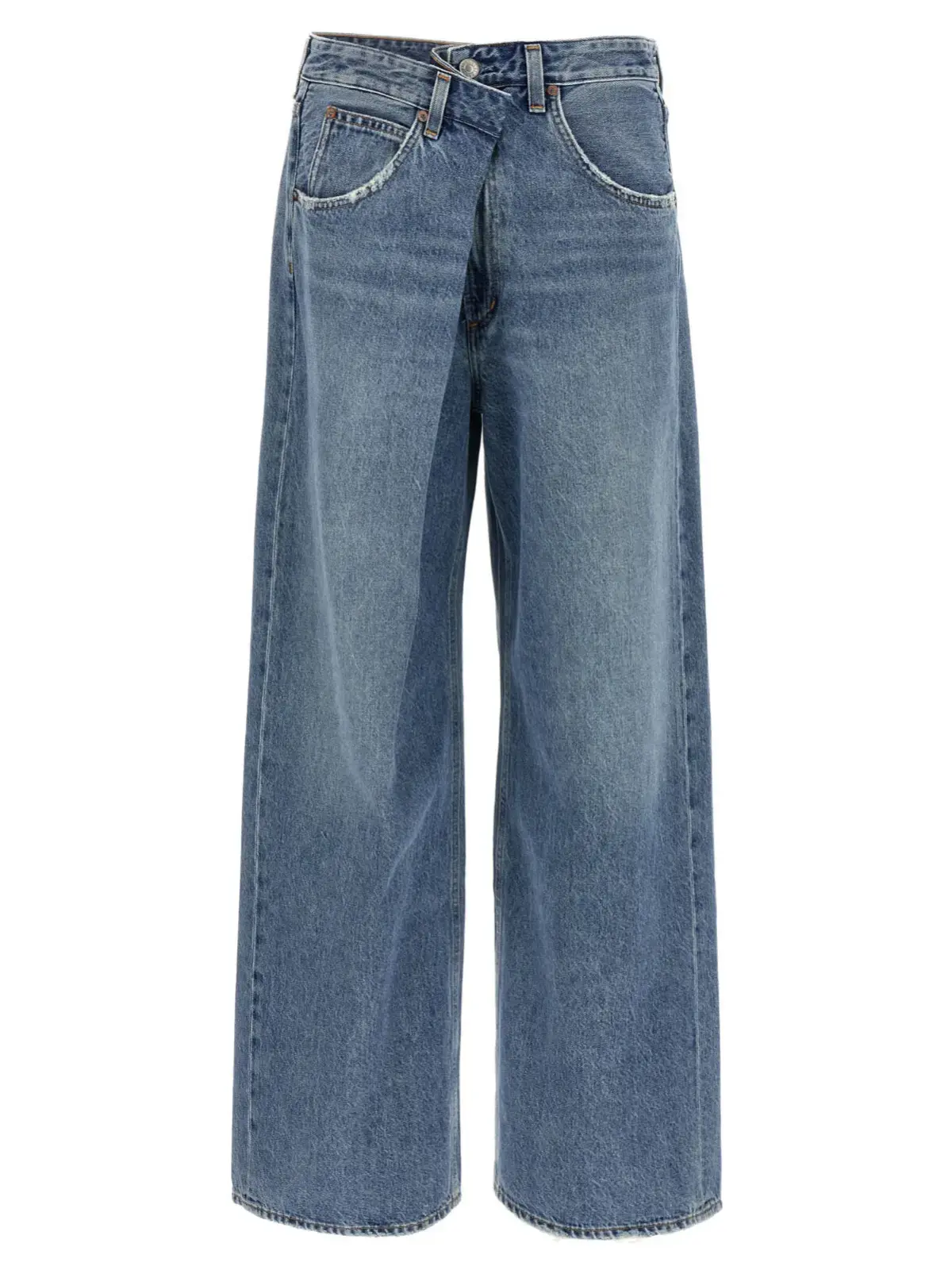 Джинси Agolde Vana виконані з високоякісного регенерованого бавовняного деніму stonewashed у ніжному блакитному відтінку, що поєднує інноваційність та екологічність. Модель з низькою посадкою та широкими штанинами підкреслює сучасний стиль і комфорт, доповнена зручною застібкою на блискавку, гачок і передньою кнопкою, а також п’ятьма практичними кишенями, що робить її універсальним вибором для впевнених у собі жінок, які цінують елегантність і статус.
