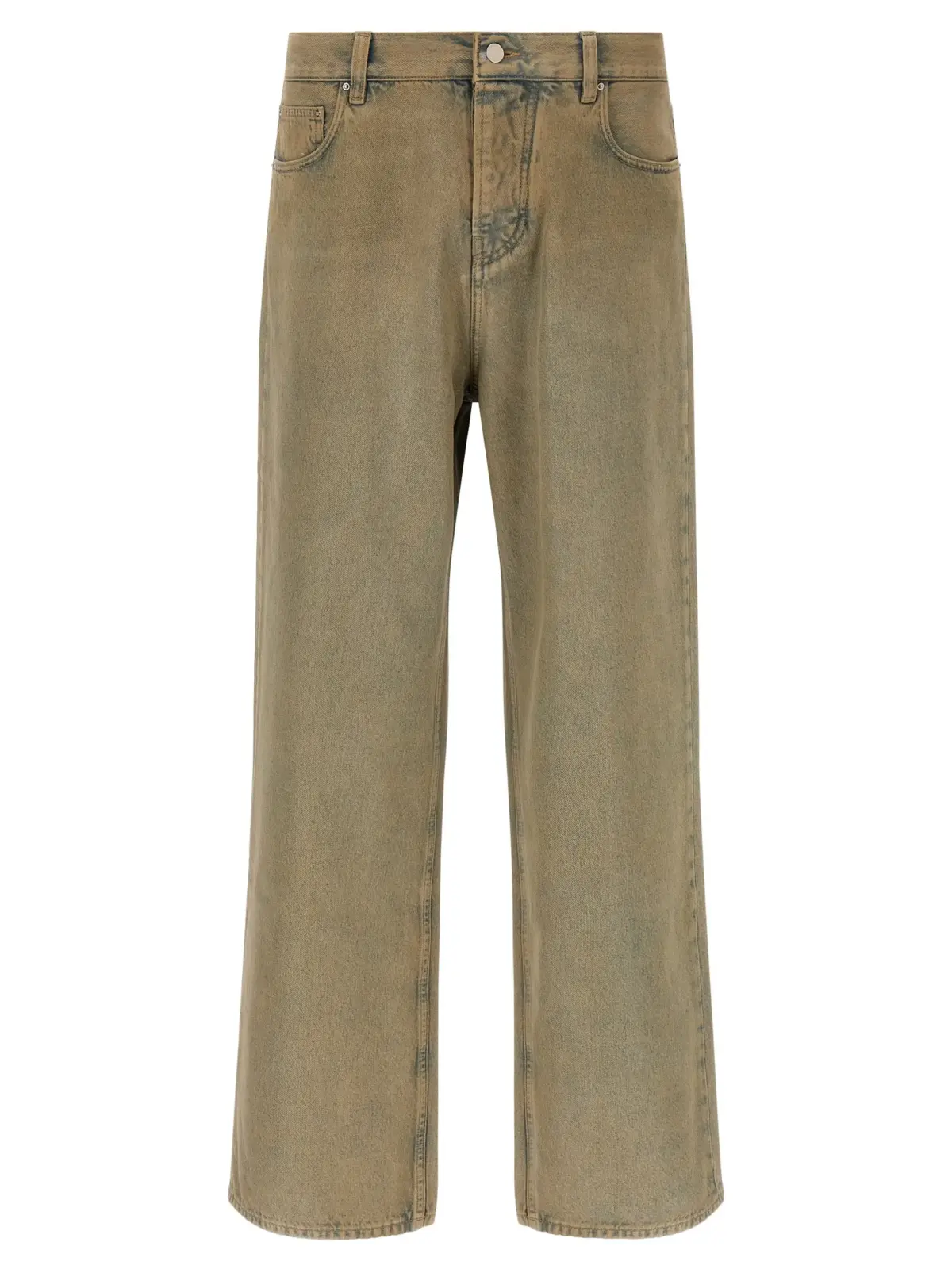 Чоловічі джинси з широкими прямими штанинами, виконані з інноваційної бавовни з унікальним ефектом неоднорідного фарбування, що підкреслює індивідуальність виробу. Елегантний дизайн поєднує п’ять функціональних кишень, застібку на ґудзики та шкіряну емблему, створюючи бездоганний стиль і статус у повсякденному образі.