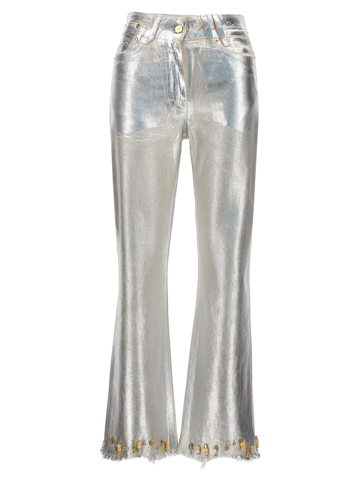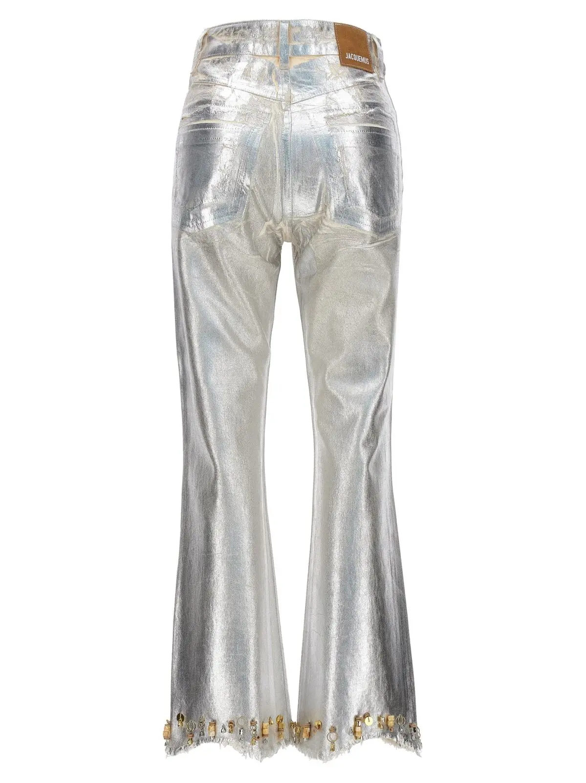 Жіночі джинси Articha Jacquemus, виконані з органічного бавовни, пропонують середню посадку та п’ять кишень. Особливістю дизайну є бісер та металеві деталі, застібка на блискавку та кнопку, а також логотип на задній частині. Екологічність цієї моделі підкреслена використанням органічного бавовни.