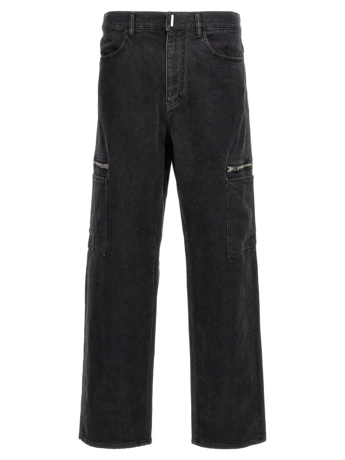 Чорні чоловічі джинси Cargo від Givenchy з принтом 4G на задній частині, кишенями на блискавці та кишенями. Виготовлені з 100% бавовни.