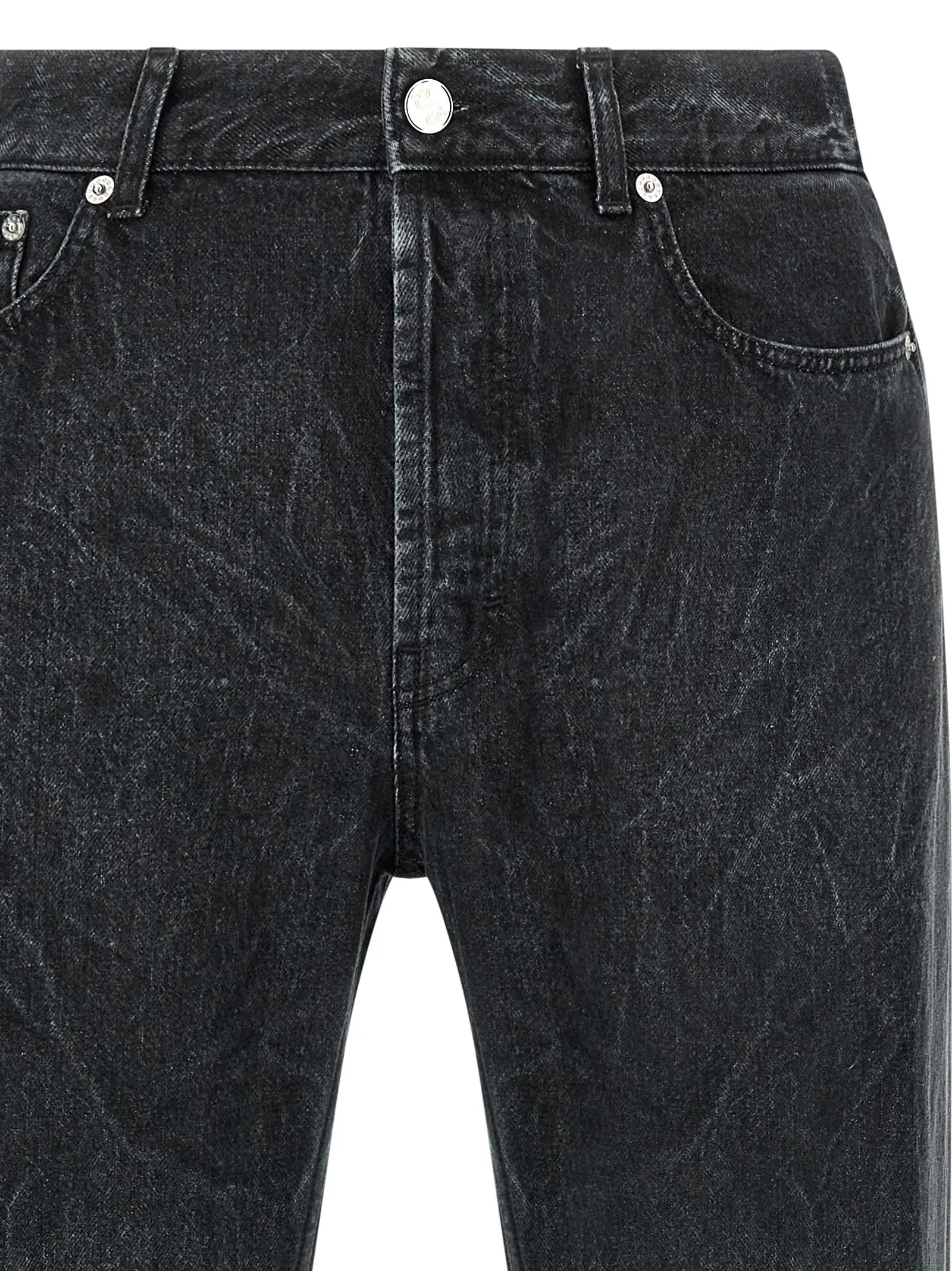 Джинси з італійського бавовняного твіллу вагою 12 унцій. Прямий крій штанин. Регулярна посадка на талії. Передня застібка на ґудзики. П’ять функціональних кишень. Шкіряна бірка з логотипом на спині. Матеріал складається зі 100% бавовни.