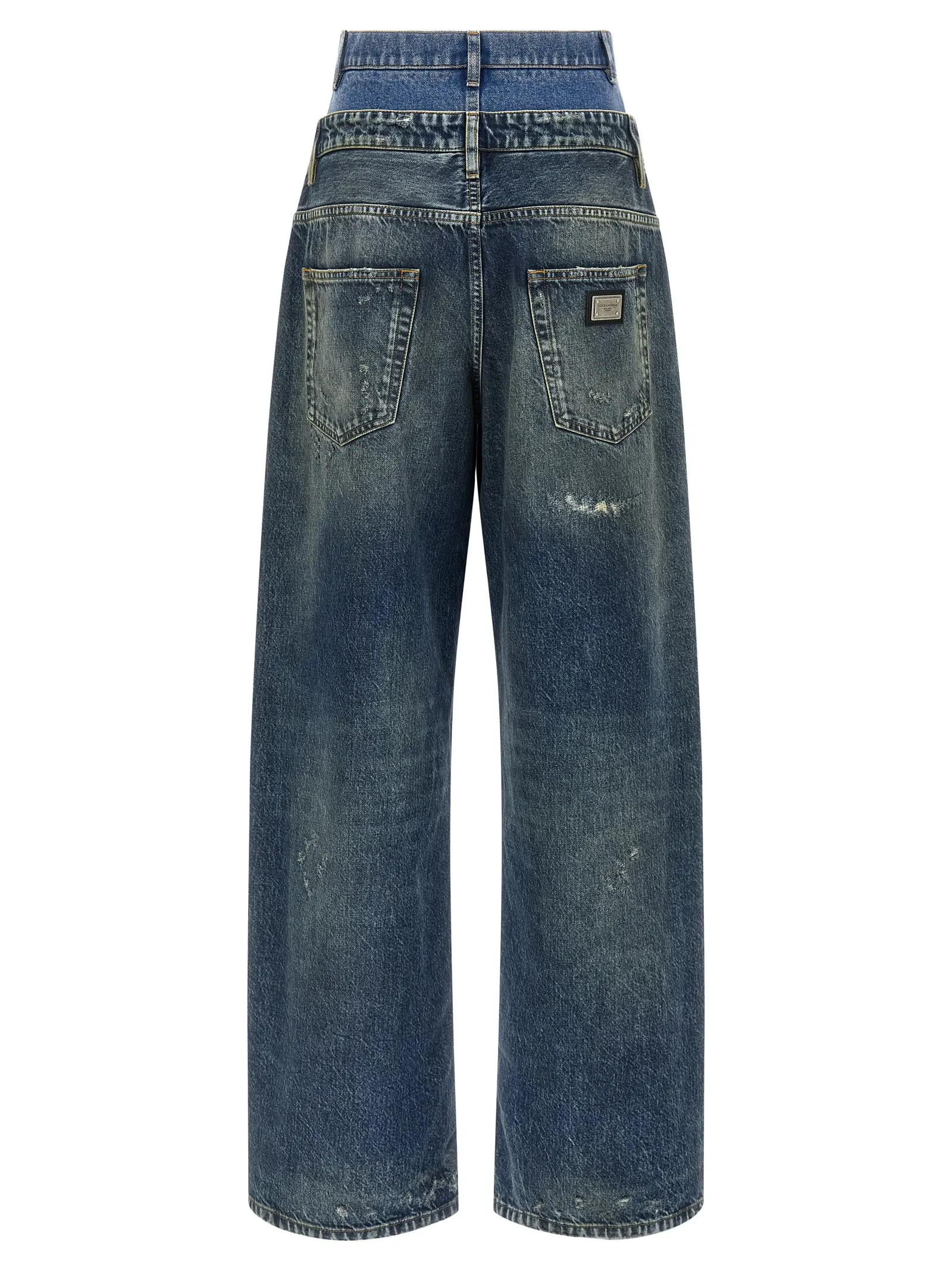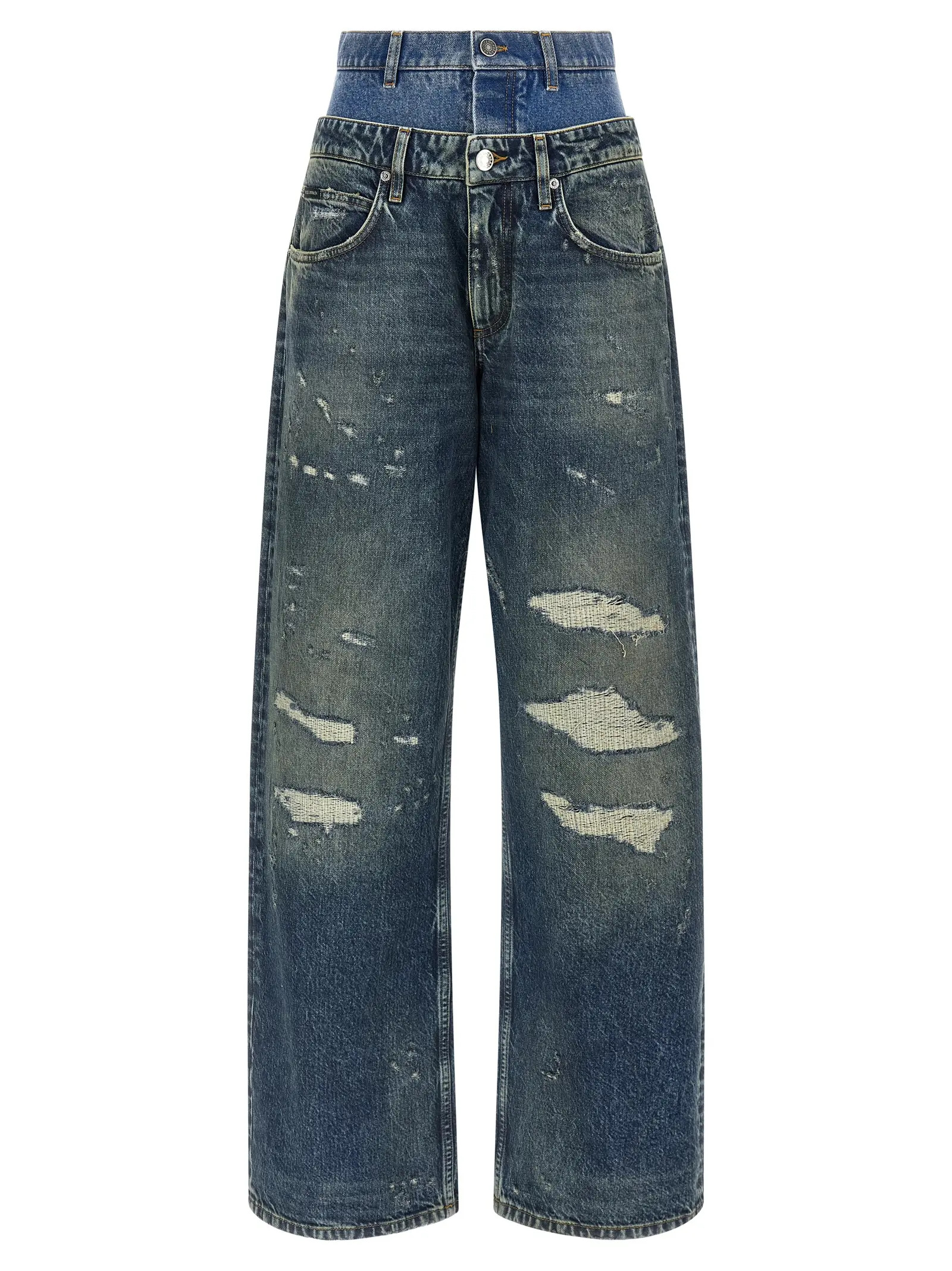 Жіночі джинси з деніму преміум-класу, виконані з 100% бавовни, поєднують інноваційний подвійний шар на талії зі стильним ефектом потертості та акуратними ушкодженнями. Широкий прямий крій, контрастна строчка й витончені деталі надають виробу неповторний статус і універсальність для сучасного елегантного образу.