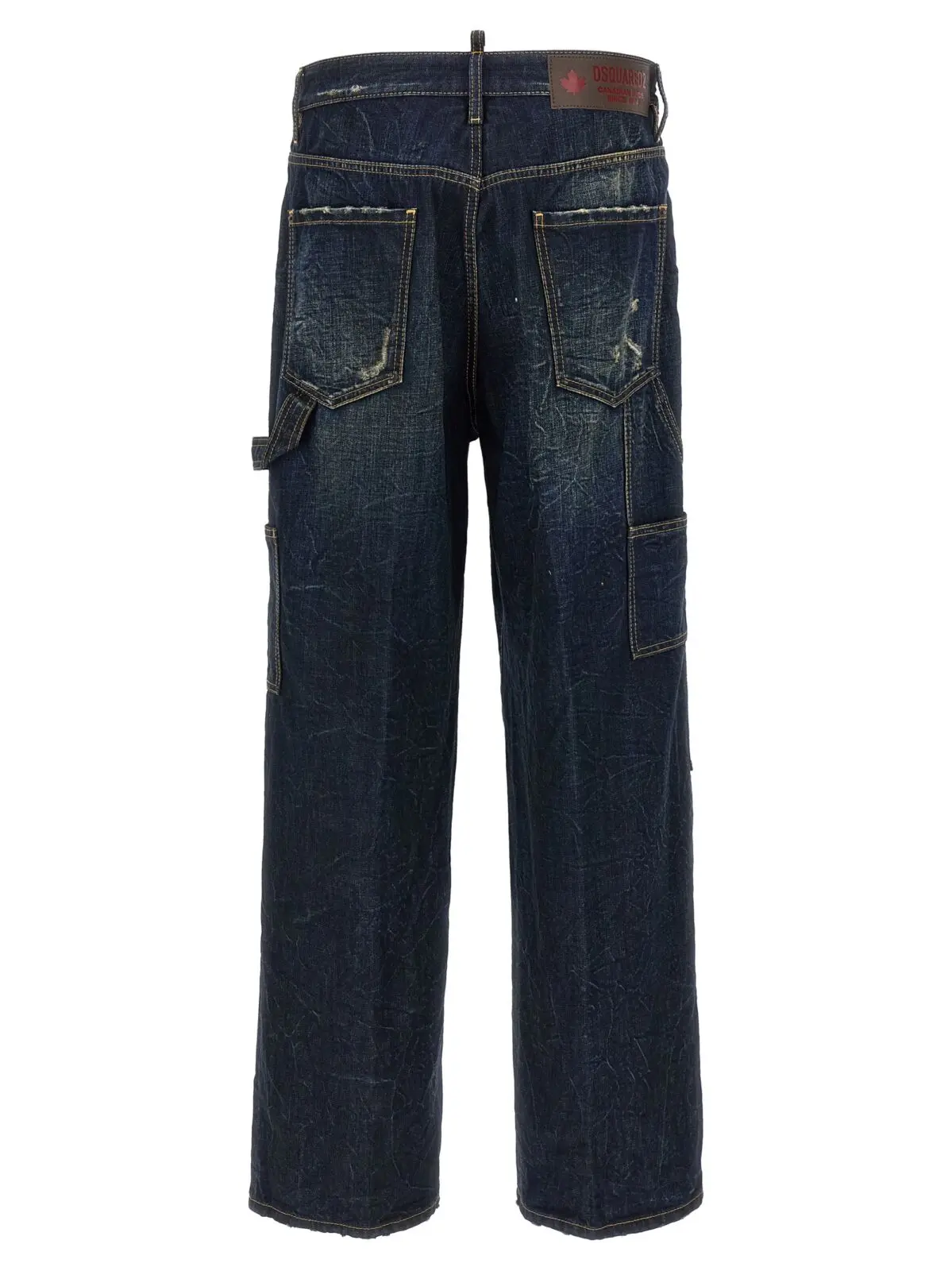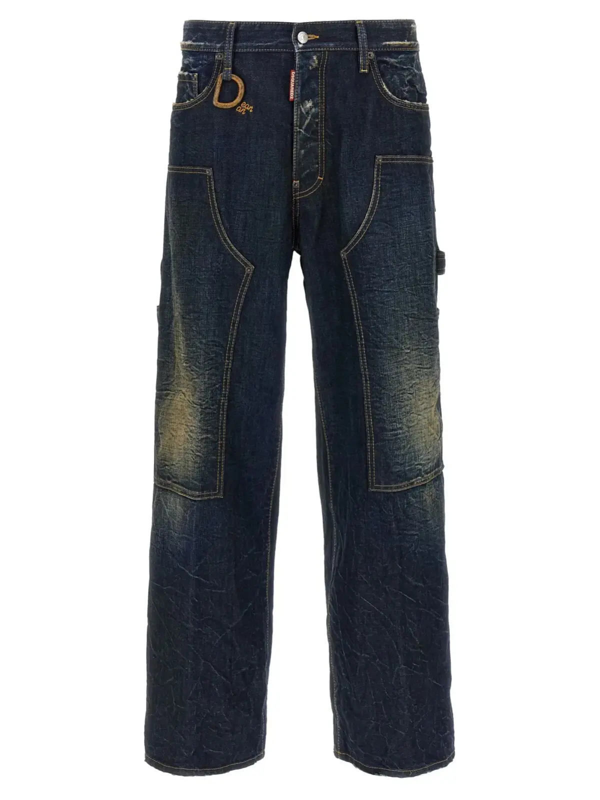 Чоловічі джинси синього кольору виконані з 100% бавовни, мають вільний крій Carpenter із ефектом легкої потертості та контрастним швом, підкреслюючи сучасний вінтажний стиль. Елегантні деталі, зокрема металевий логотип та шкіряна бирка, додають виробу статусності та універсальності для будь-якого образу.