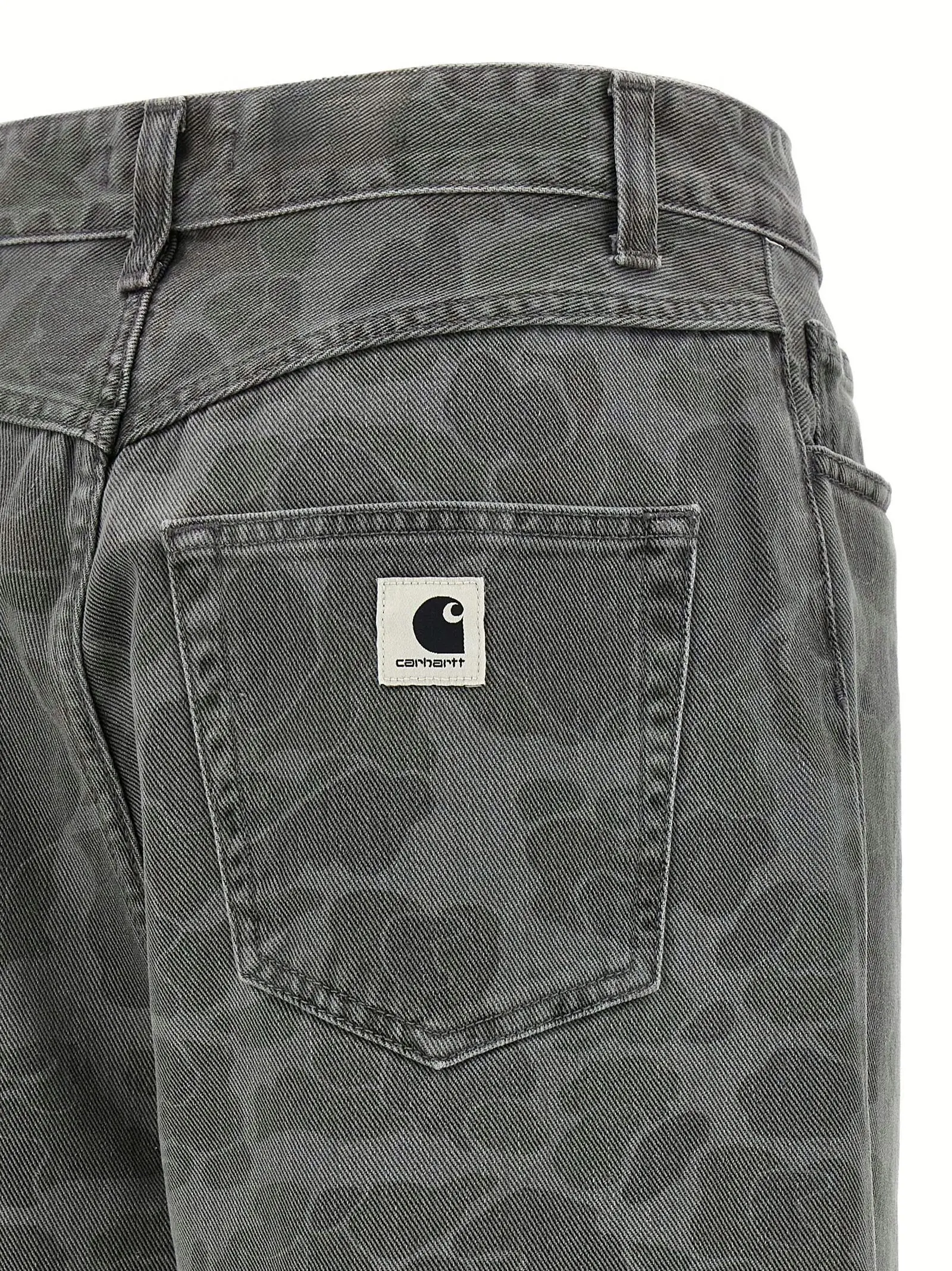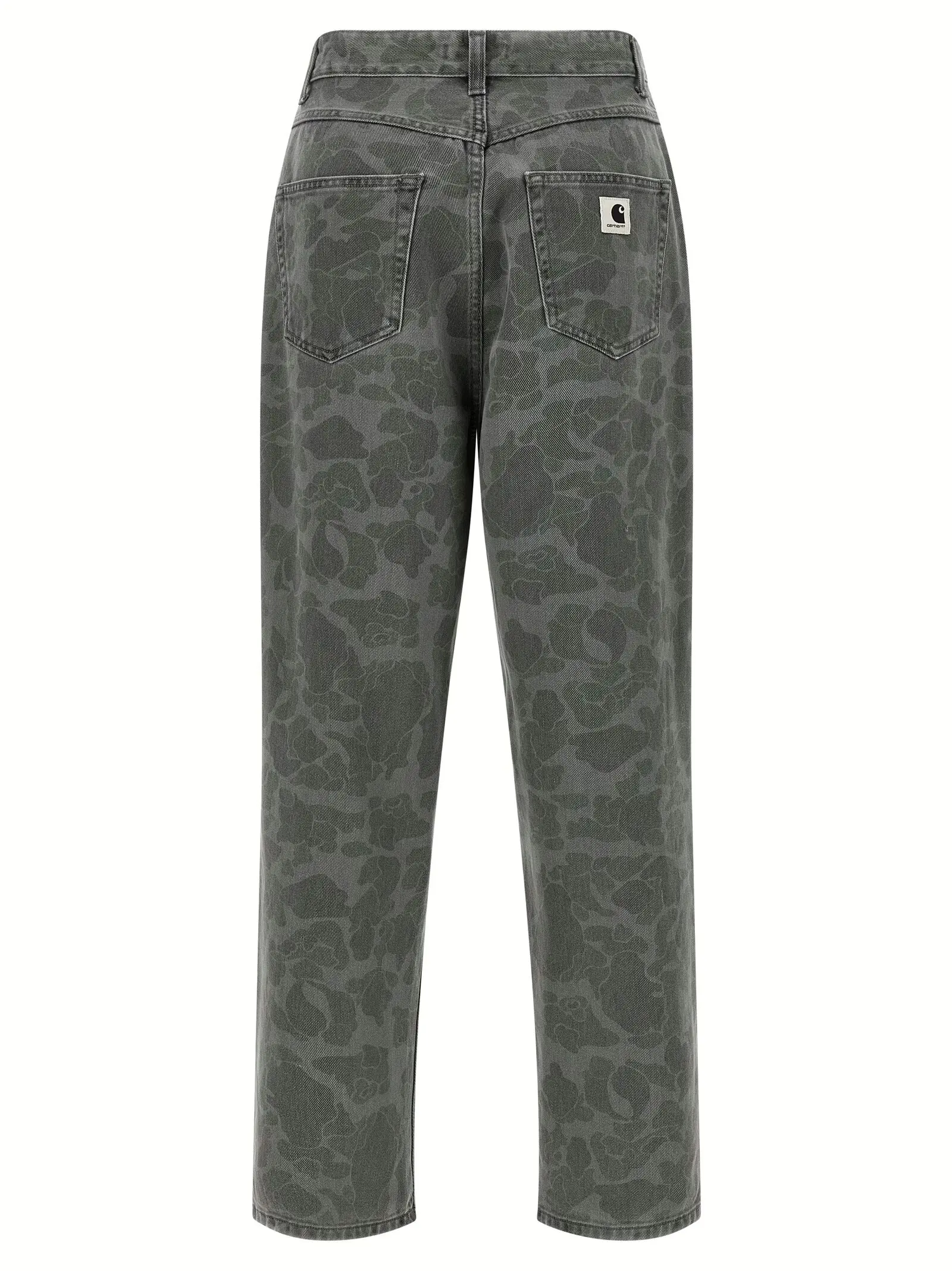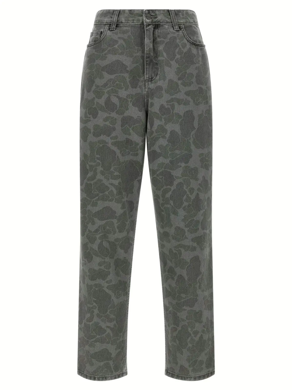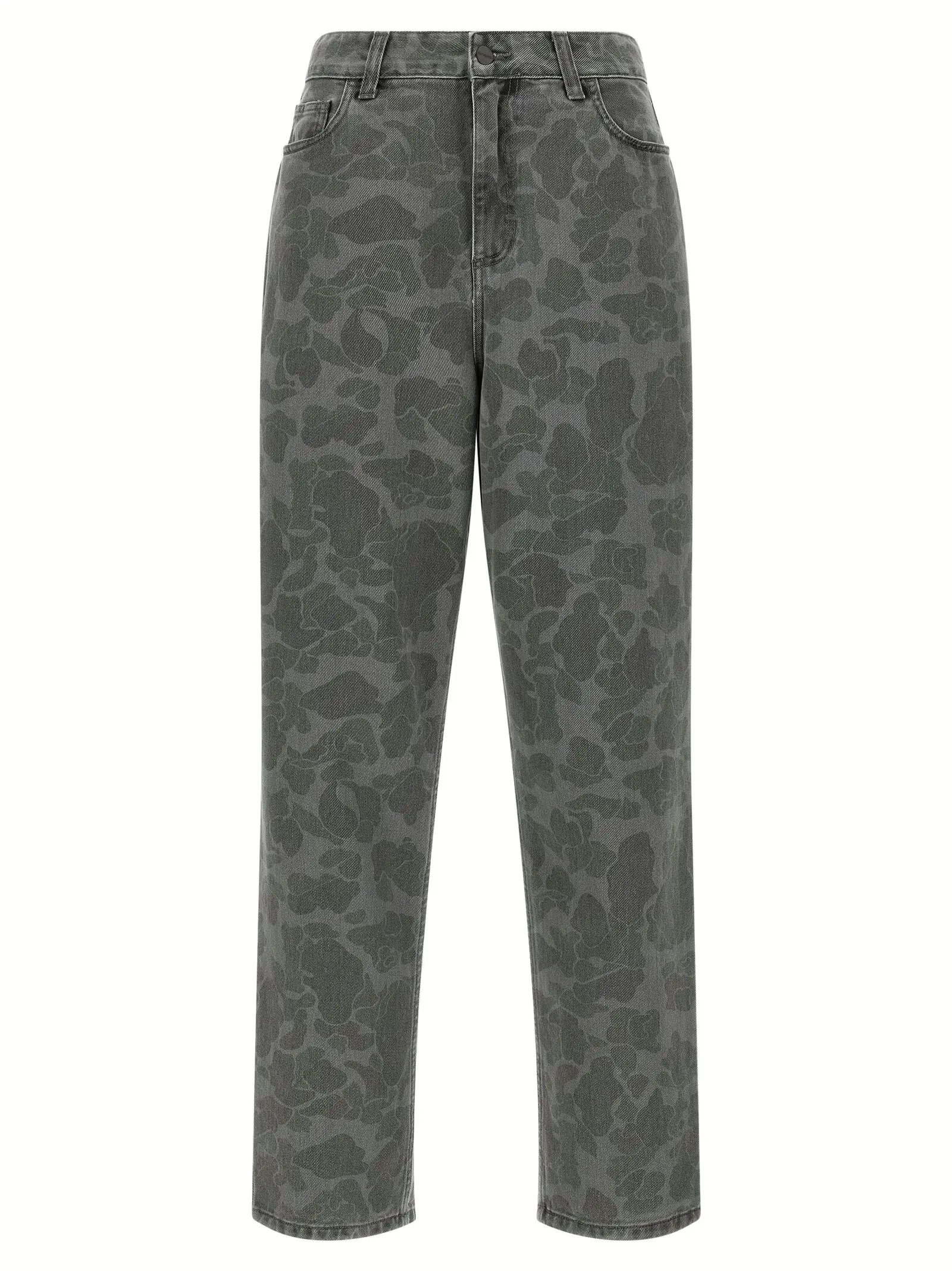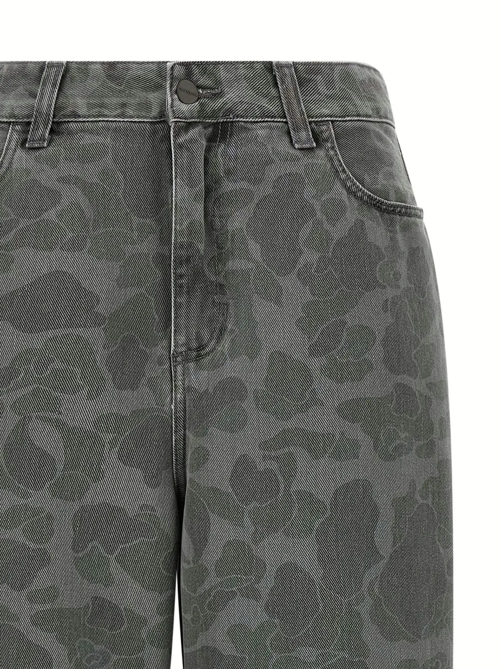 Елегантні жіночі джинси з високою талією з важкого деніму з органічної бавовни, виконані в сіро-кольоровій камуфляжній гамі з ефектом зношеності. Витончений крій з вузькими штанинами, функціональність п’яти кишень та фірмовий логотип підкреслюють статус і сучасний стиль, створюючи універсальний образ преміум-класу.