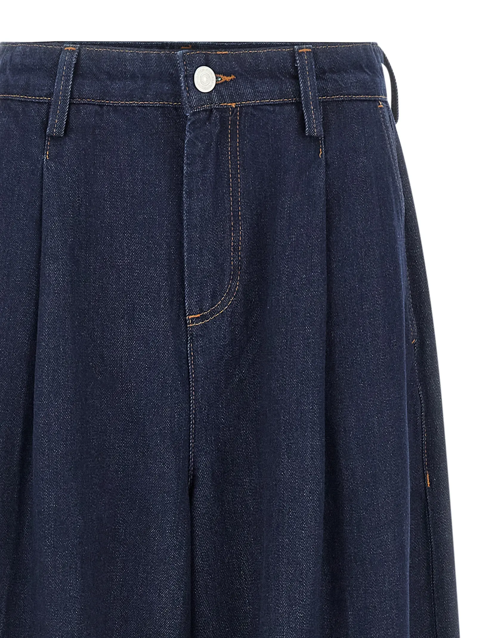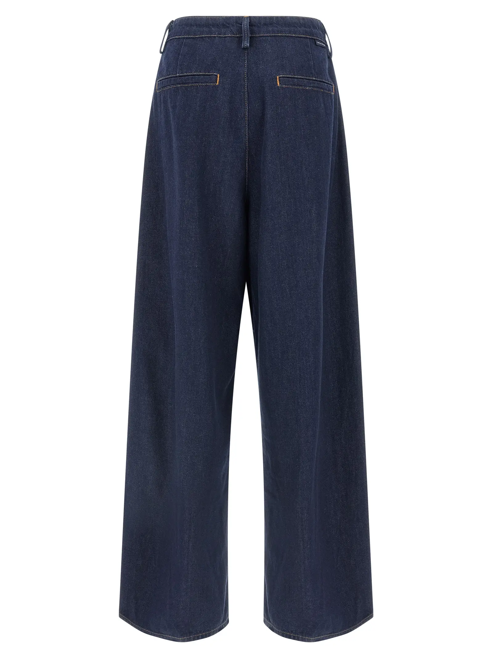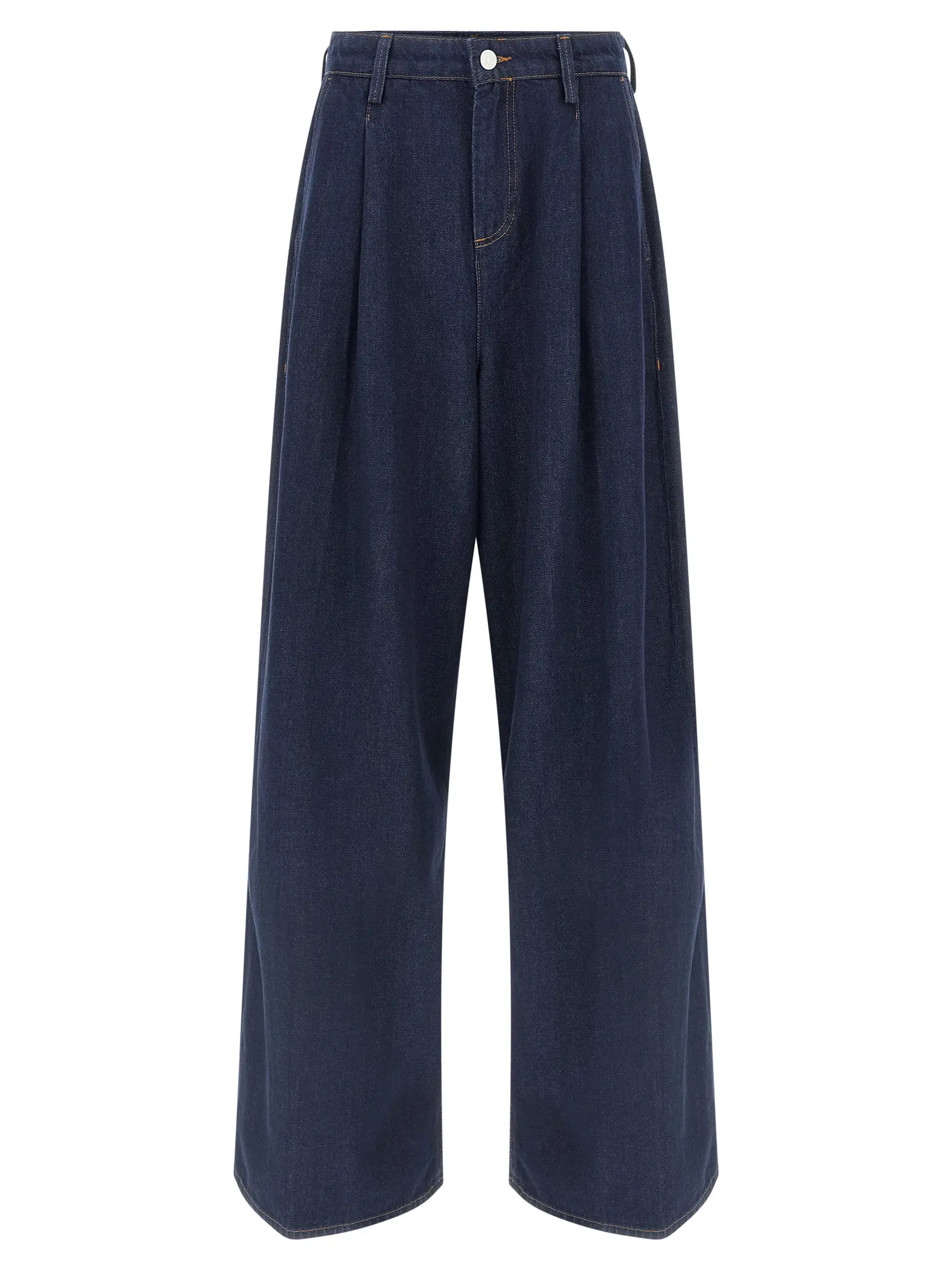 Джинси виконані з натуральної бавовни. Висока посадка. Контрастні шви. Наявність виточок. Додатково широкі прямі штанини. Присутні кишені.