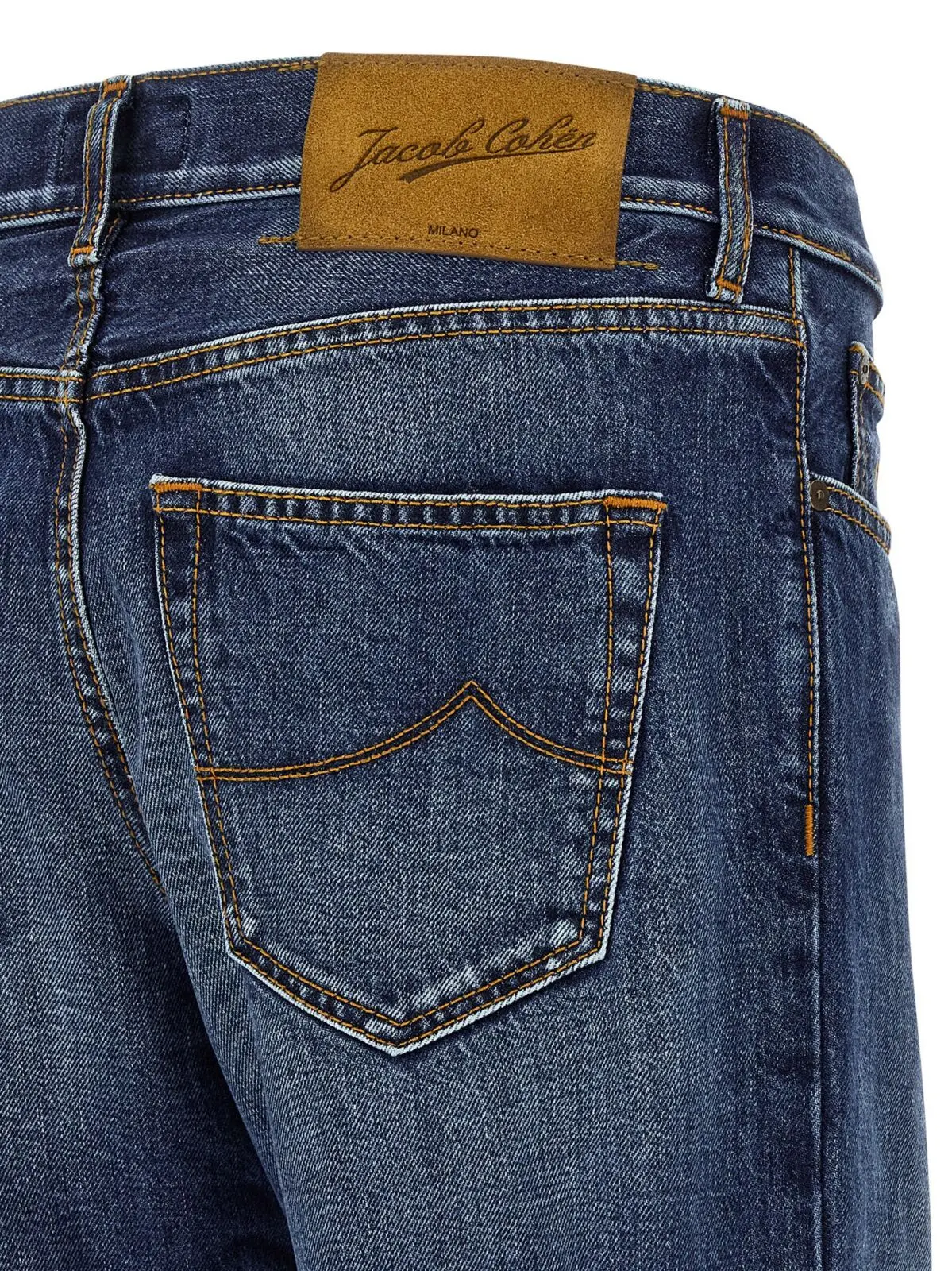 Чоловічі джинси Jacob Cohen Cropped Tapered виконані з високоякісної 100% бавовняної деніму, поєднуючи класичний синій колір із сучасним кроєм середньої посадки, трохи укороченими прямими штанинами та заниженою лінією кроку. Елегантний дизайн підкреслює статус і стиль, забезпечуючи комфорт та універсальність у повсякденному гардеробі.
