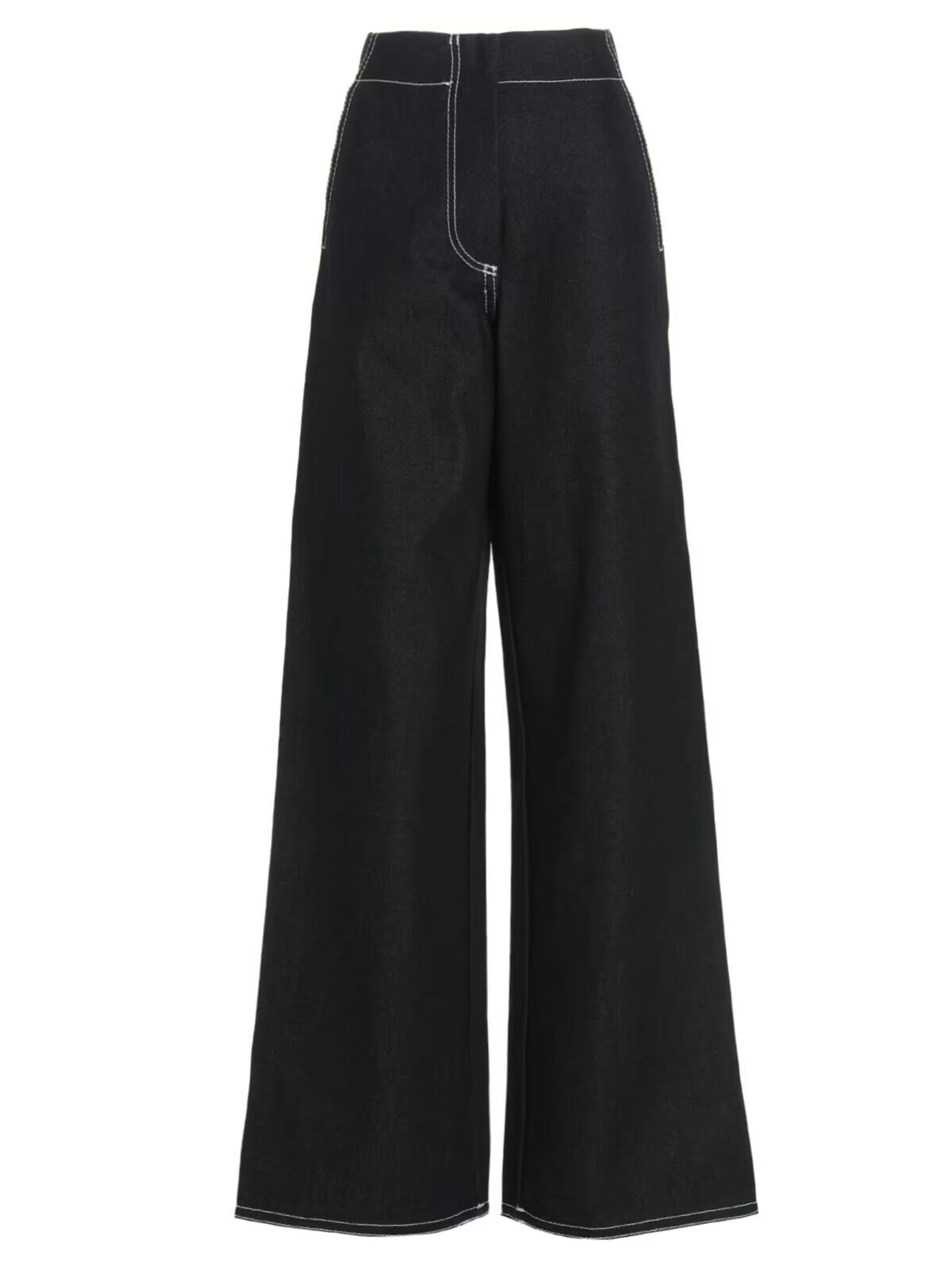 Джинси Jump Sunnei – це чорні жіночі джинси з темним відтінком, виготовлені з 100% бавовни. Вони мають застібку-блискавку і гачок, контрастні шви і широкі штани.