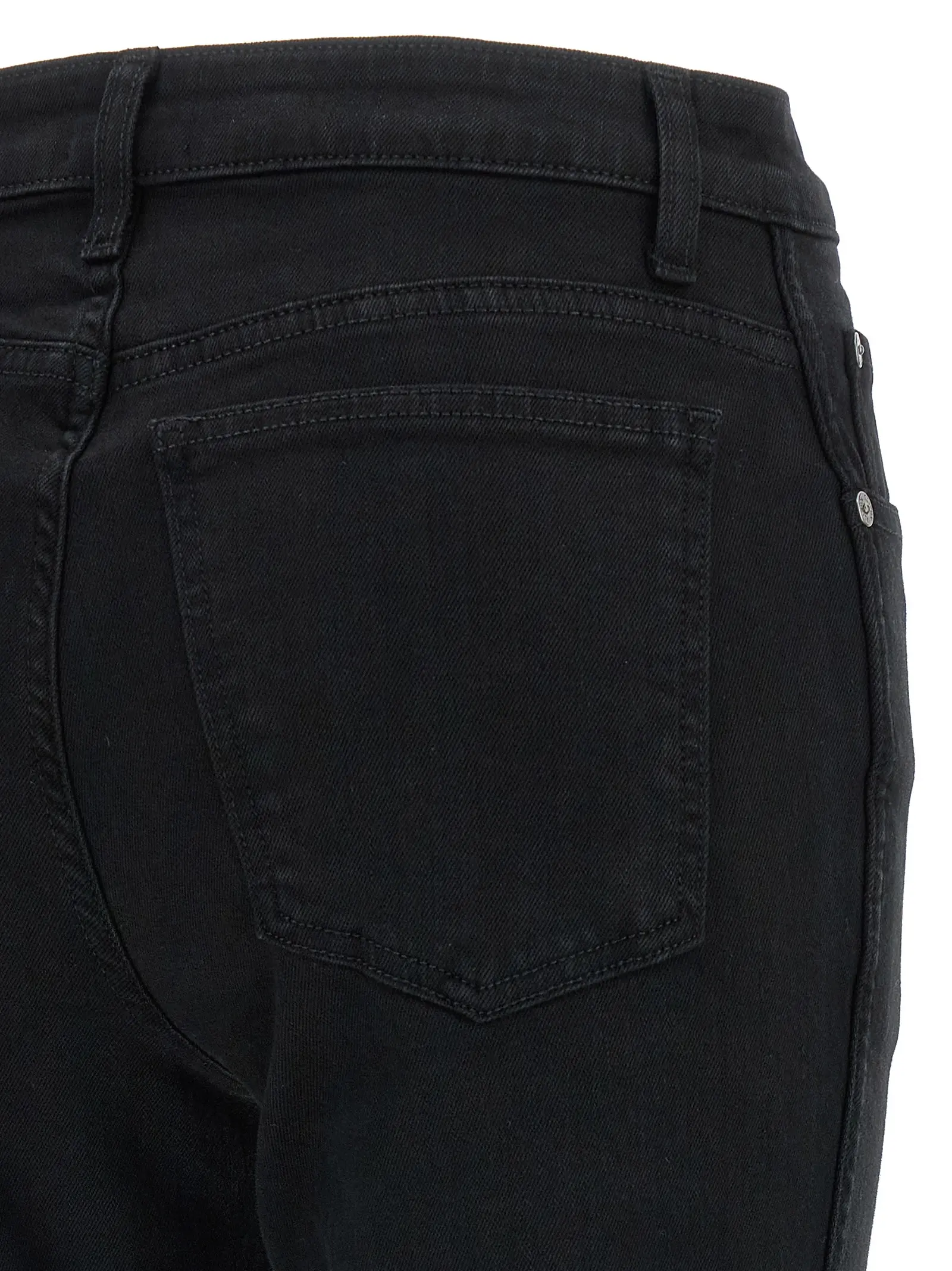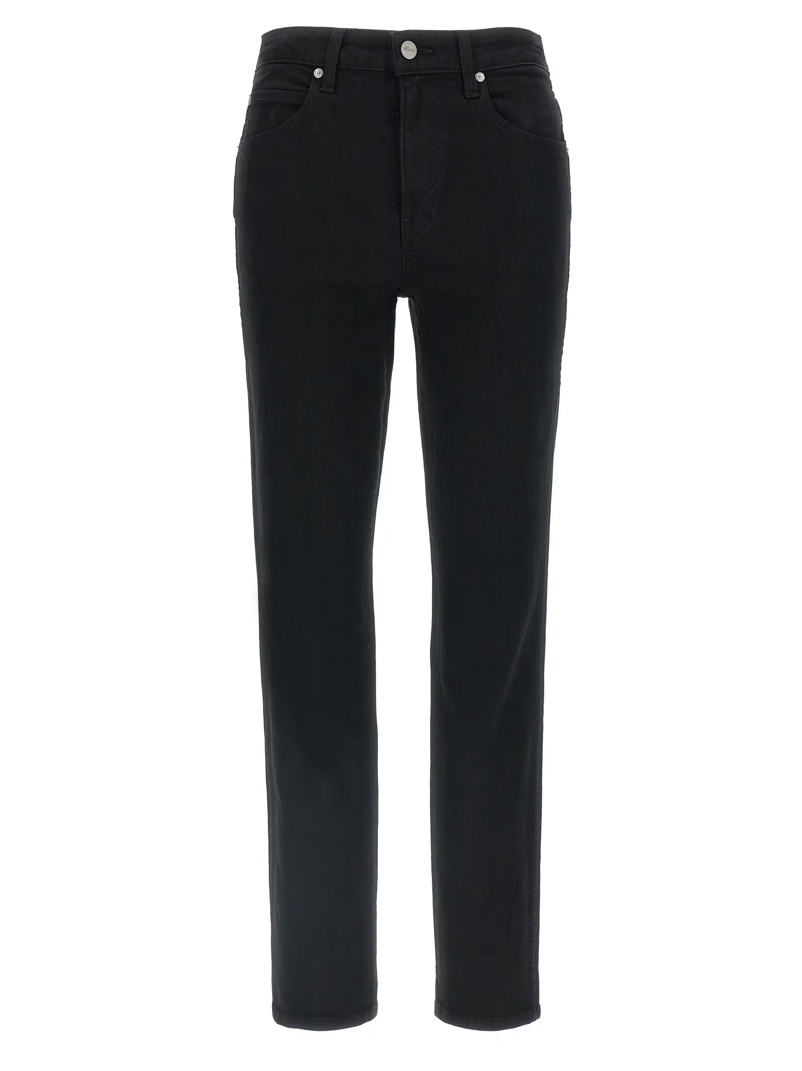 Чорні жіночі джинси Viv виготовлені з еластичного деніму високої якості, що поєднує 98% бавовни та 2% поліуретану для ідеальної посадки та комфорту. Строгий крій із прямими штанинами до щиколотки, середньою посадкою та класичною застібкою підкреслюють вишуканий стиль і універсальність, створюючи бездоганний образ для будь-яких випадків.