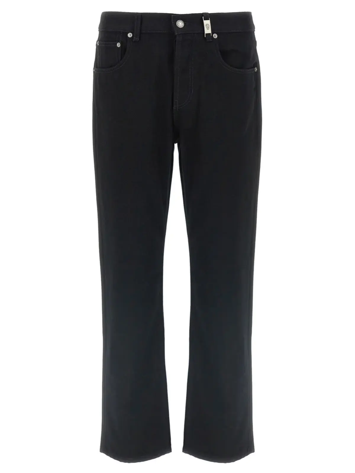Чорні джинси Mcqueen Skull, виготовлені з 100% бавовни, поєднують у собі елегантність і сучасний стиль. Цей виріб з прямим кроєм та класичним застібанням на гудзик оснащений п’ятьма кишенями та металевим значком черепа на передній частині, що надає йому унікального характеру. Шкіряна етикетка на спині підкреслює статус та якість бренду. Інноваційна технологія фарбування забезпечує насичений колір і тривалу експлуатацію, роблячи цю модель універсальним вибором для будь-якого гардеробу.