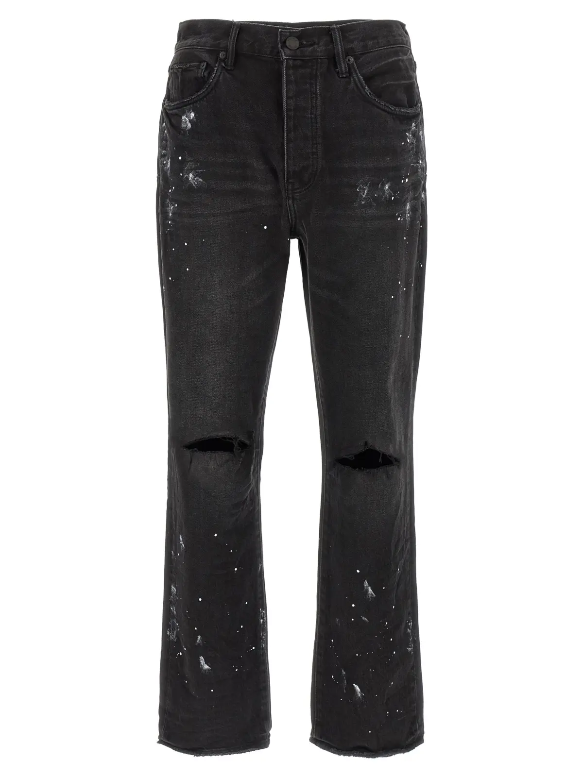Грубий денім із чистої бавовни перетворюється на справжній артефакт завдяки майстерній ручній обробці з ефектом вживаності та художніми плямами фарби. Характерні розрізи на колінах додають динаміки прямому крою, а автентична застібка на ґудзиках підкреслює вінтажну естетику. Фінальним акцентом стає нашивка з натуральної шкіри, що засвідчує унікальність кожного екземпляра в цій серії речей з особливим характером.