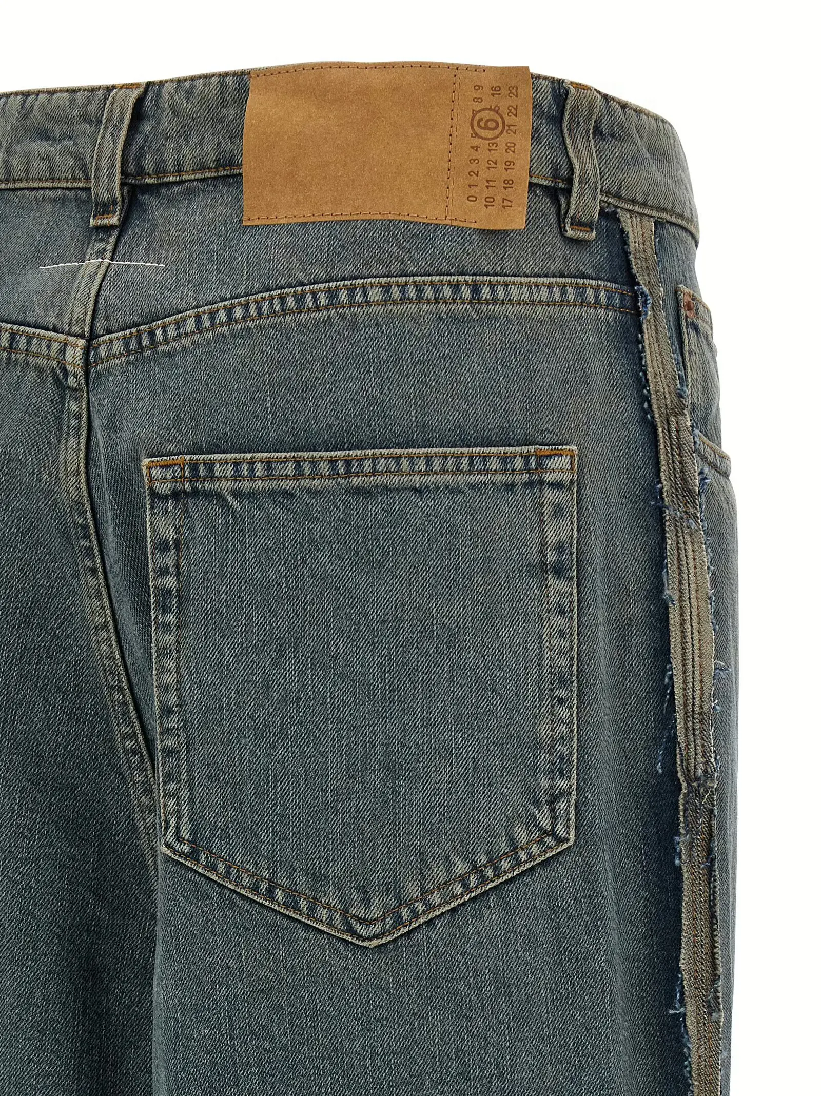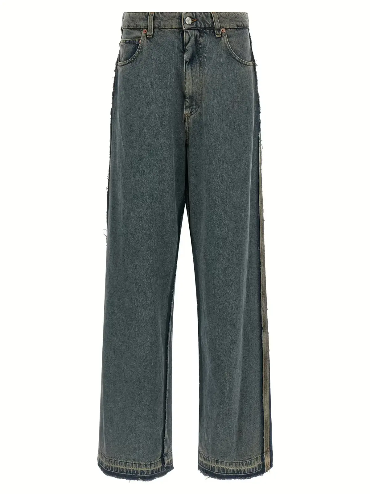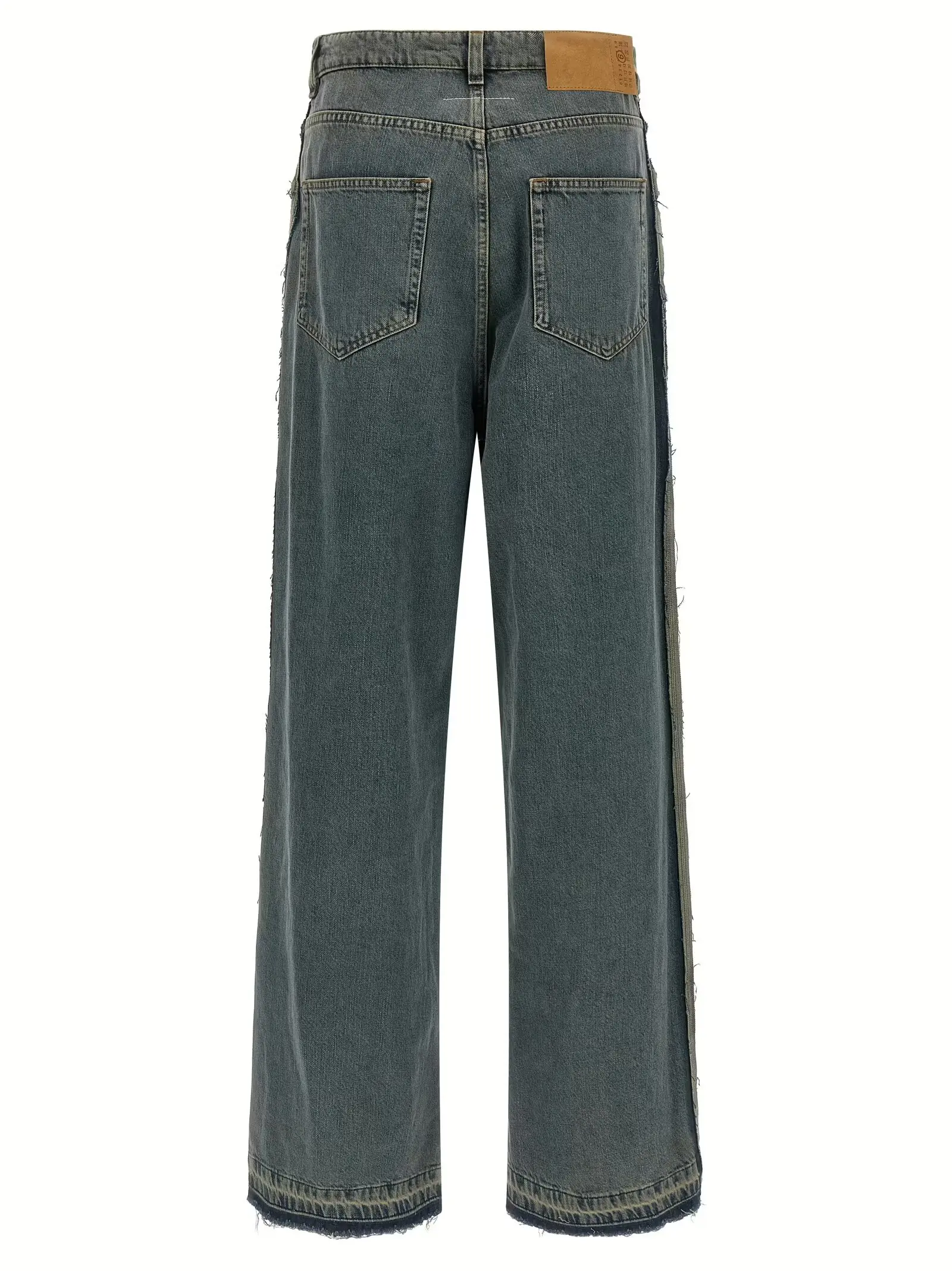 Сині джинси з деніму Stonewashed виготовлені зі 100% натуральної бавовни, поєднують інноваційну конструкцію з підвернутими панелями та елегантний широкий прямий крій. Деталі у вигляді необробленого краю, контрастної білої строчки та фірмового логотипа підкреслюють бездоганну якість і статус, створюючи універсальний образ високого стилю.