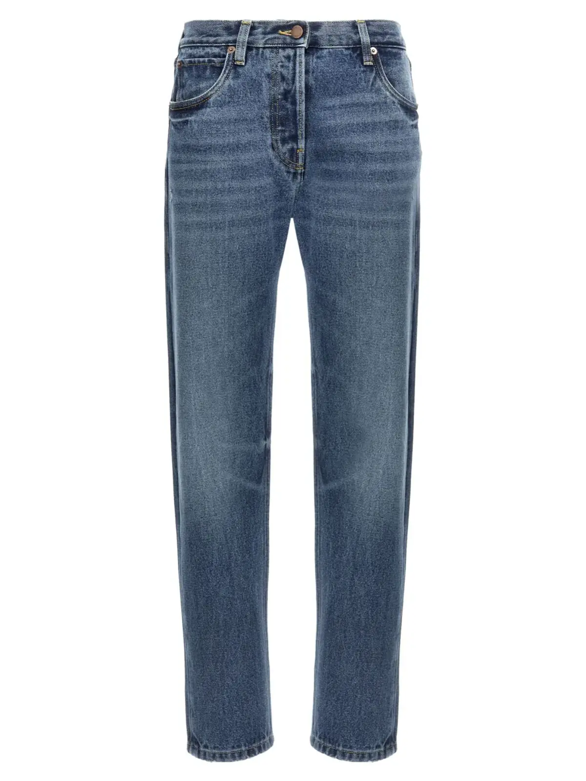 Джинси Prada Denim вишукано поєднують класичний стиль і сучасний підхід до моди. Виготовлені з 100% бавовни, вони забезпечують максимальний комфорт та природну дихаючість. Прямий крій, п’ять кишень і кнопкова застібка підкреслюють елегантність, а шкіряний логотип на спині додає розкішного акценту. Цей універсальний елемент гардеробу стане ідеальним вибором для будь-якої нагоди, підкреслюючи ваш статус і бездоганний смак.