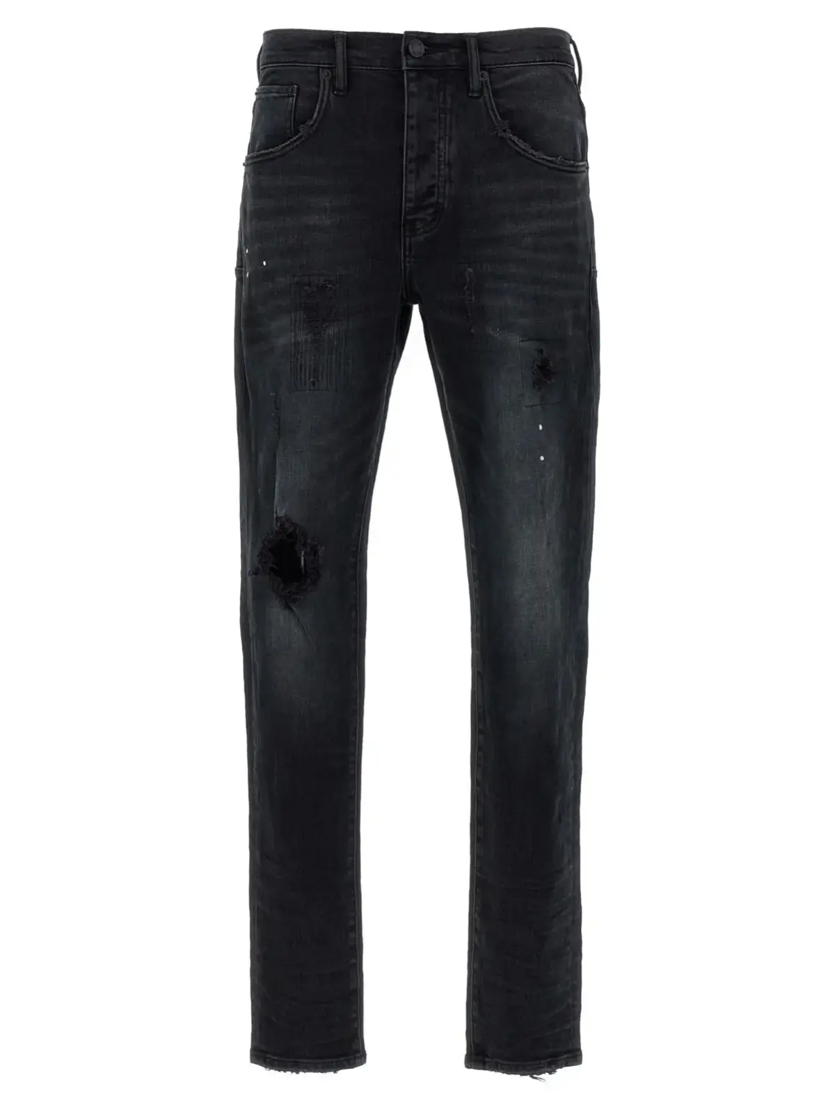 Чоловічі джинси чорного кольору з колекції преміум класу виконані з високоякісного еластичного бавовняного деніму, що забезпечує комфорт і ідеальну посадку завдяки середній талії та вузькому прямому крою. Дизайн із стильними потертостями підкреслює інноваційний характер виробу, додаючи неповторного статусу та сучасного шику.