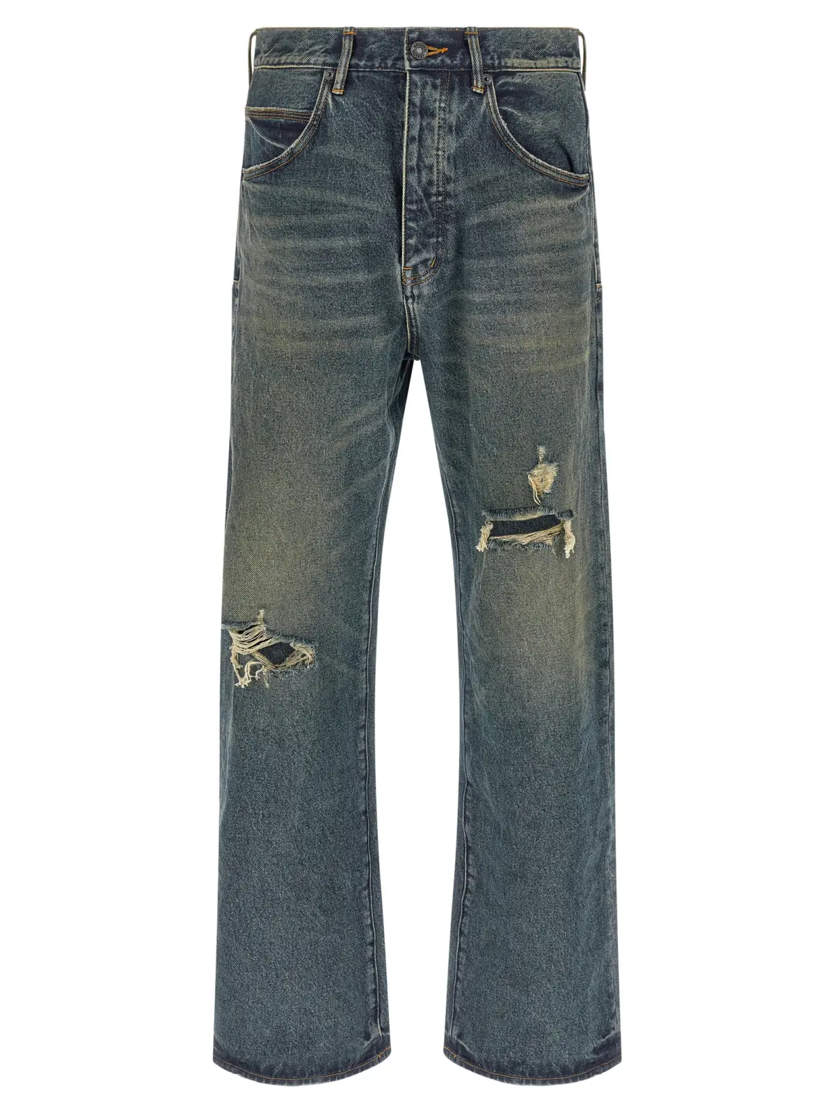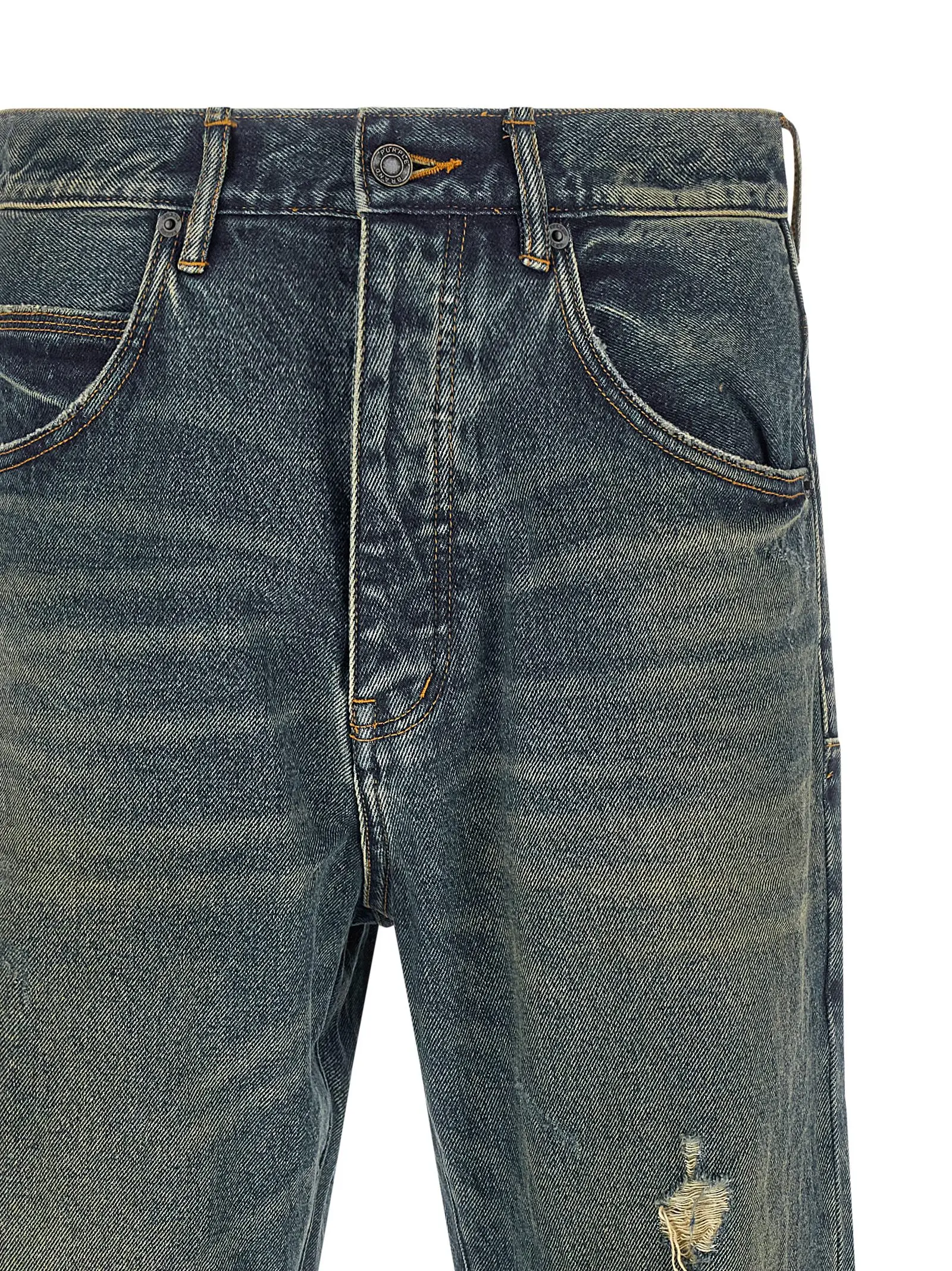 Ці джинси втілюють естетику вишуканої недбалості, де автентичний щільний денім поєднується з майстерним ефектом потертості та зухвалими розрізами. Фактурна стоунвош-обробка додає виробу глибини, а контрастне прошивання підкреслює архітектурність силуету з вільною широкою штаниною та низькою посадкою. Кожна деталь, від фірмового металевого ґудзика до лаконічного брендованого тега ззаду, перетворює класичну бавовну на маніфест сучасної розкоші, даруючи відчуття виняткового комфорту та впевненого стилю.